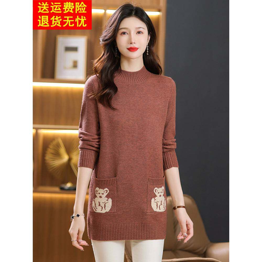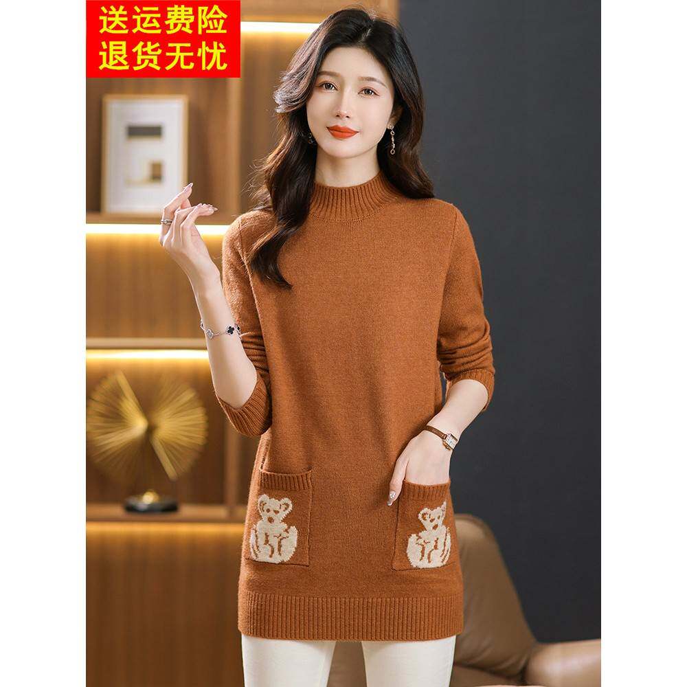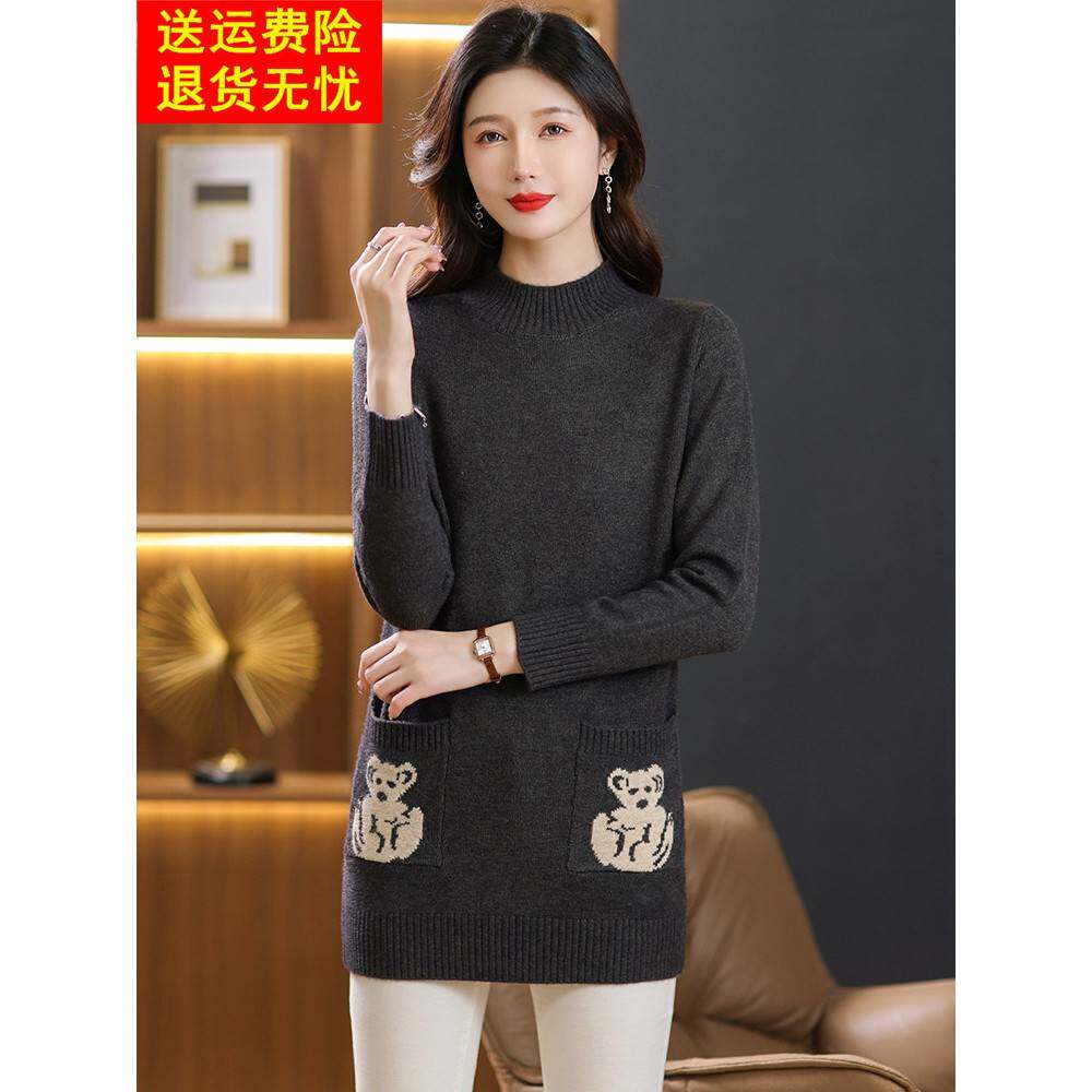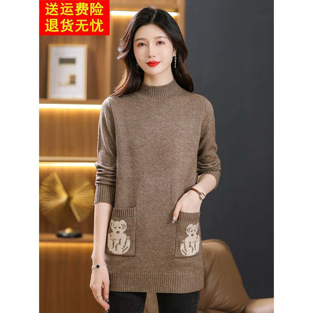 鄂尔多斯市中长款口袋毛衣羊毛衫女秋冬季加厚内搭羊绒针织打底衫