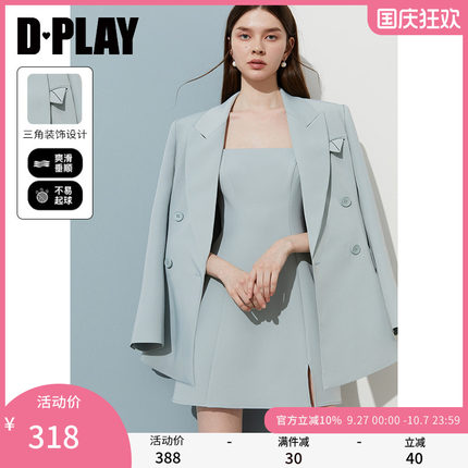 DPLAY【时髦精系列】2025年春季新款蓝色西装外套女休闲通勤西服