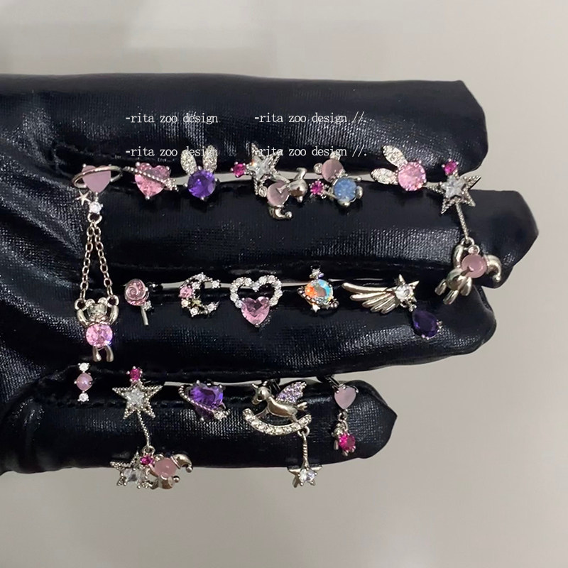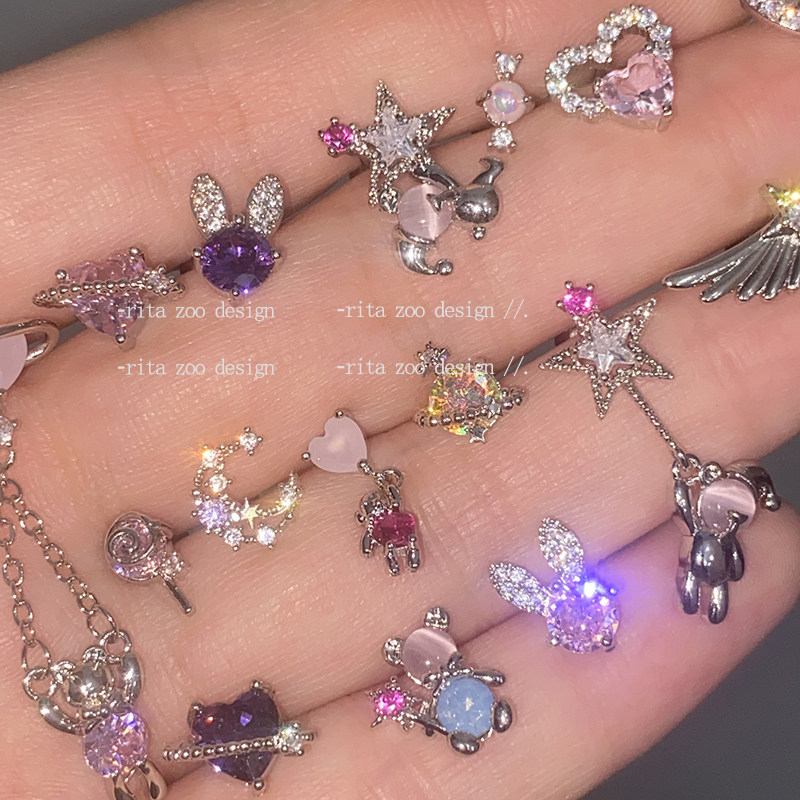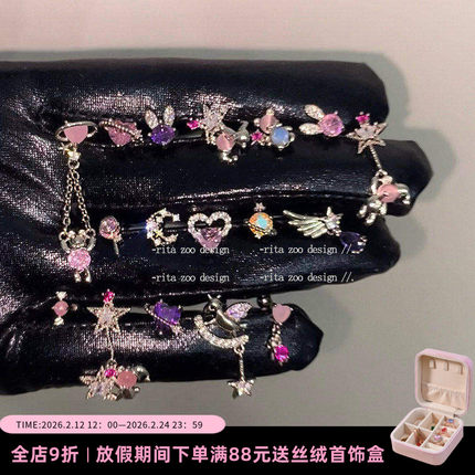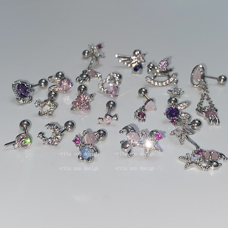 【甜酷预警】INS彩锆可爱月亮小熊星星天使翅膀木马耳骨钉耳钉女