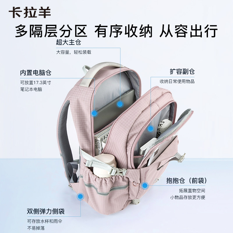 卡拉羊减负初中学生书包男五六年级大容量双肩包女防水登山包5529