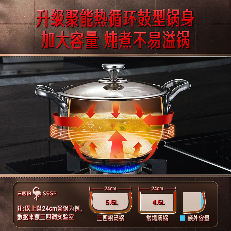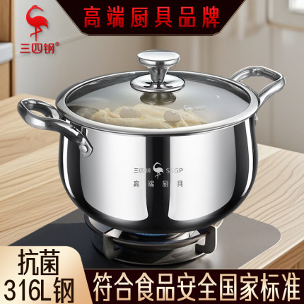 三四钢®304不锈钢汤锅家用2025新款加厚煲汤煮锅电磁炉粥锅炖锅