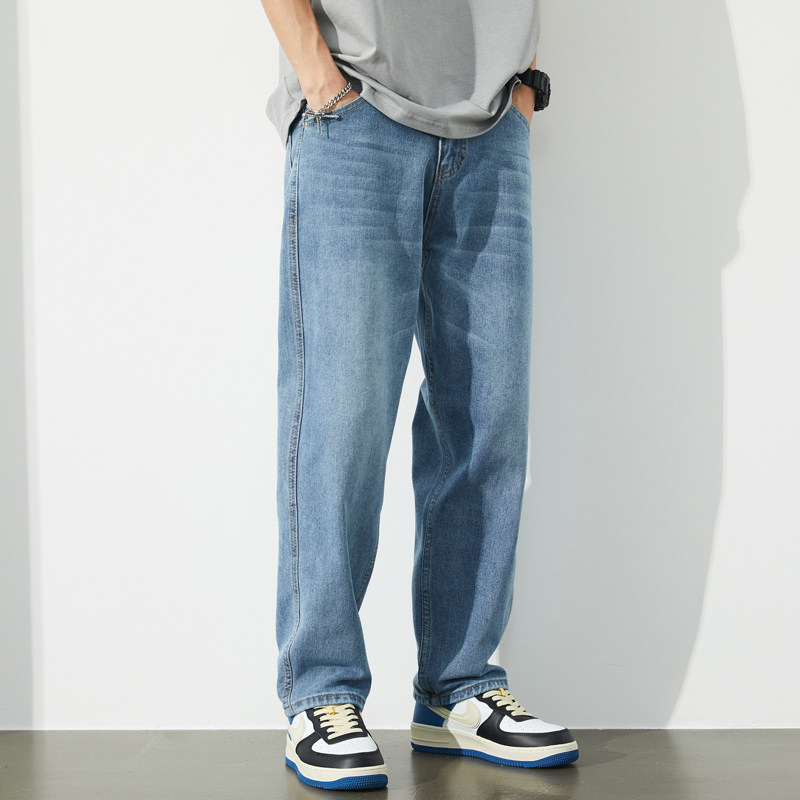 雅仓浅色牛仔裤男宽松直筒春季男士休闲百搭夏季薄款阔腿拖地裤子