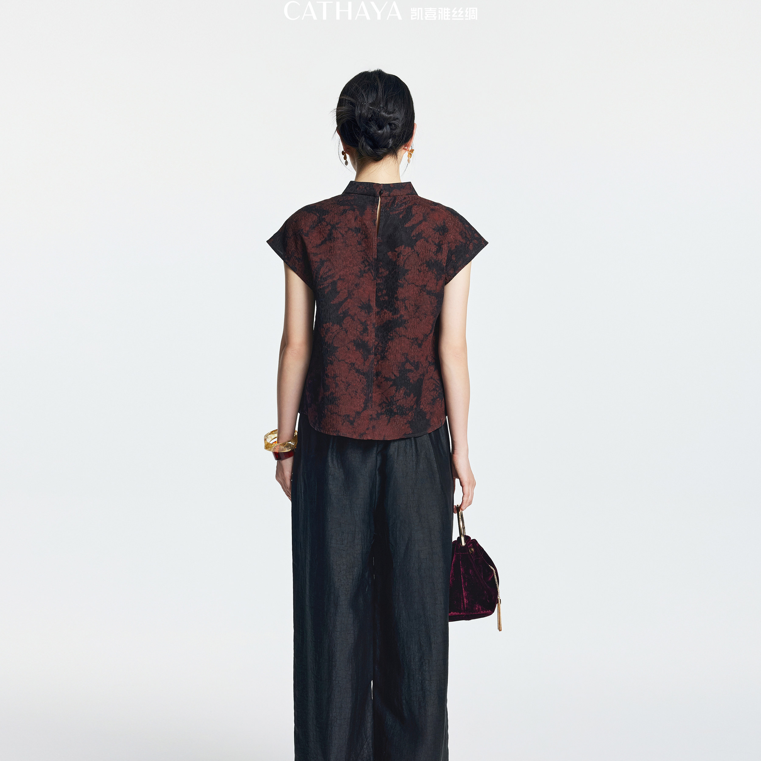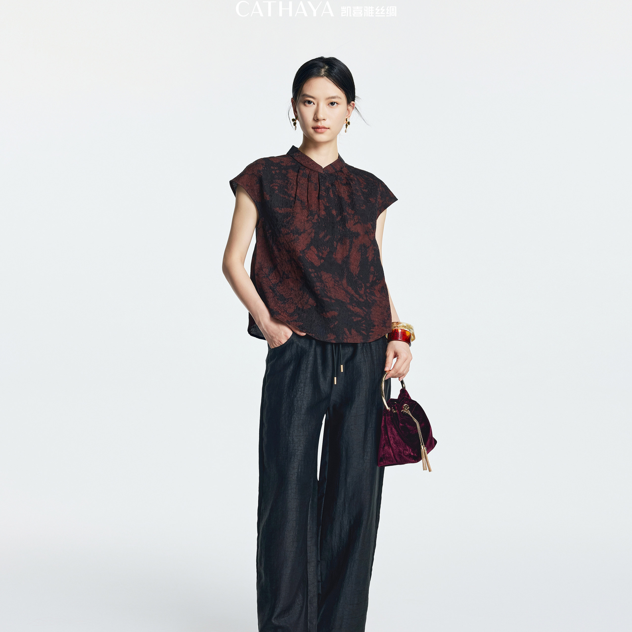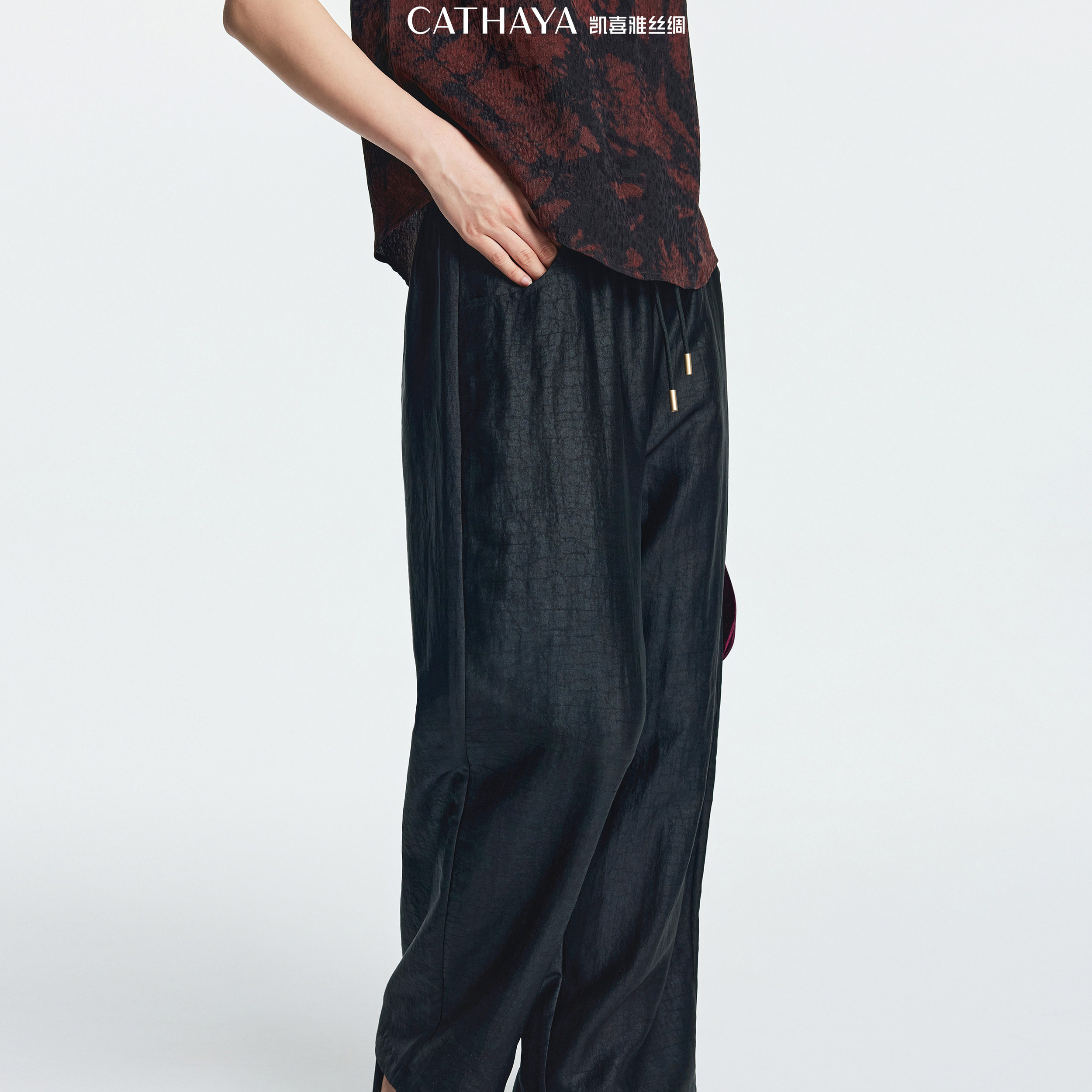 凯喜雅香云纱裤子真丝休闲裤宽松2025阔腿裤百搭ZZK1FKJM039