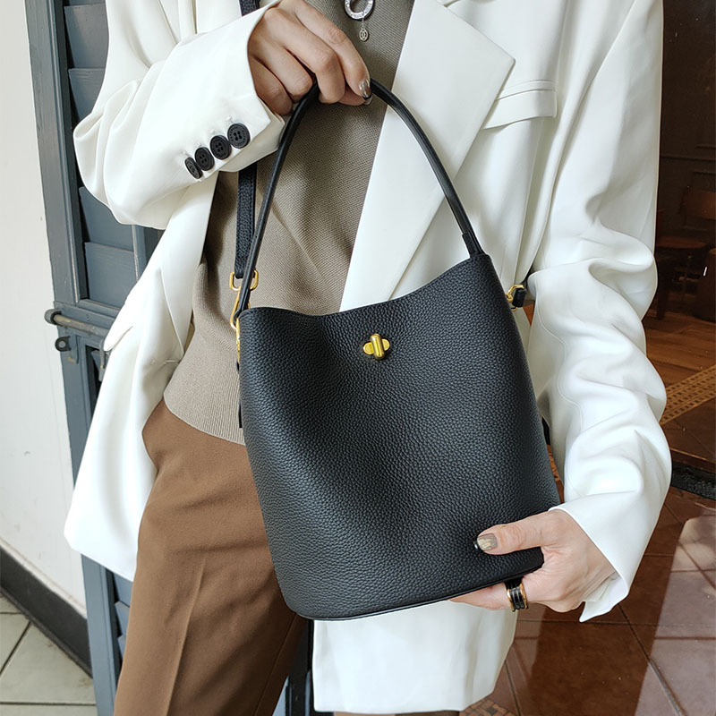 小众真皮水桶包女2024新款手提极简风单肩百搭通勤头层牛皮斜挎包