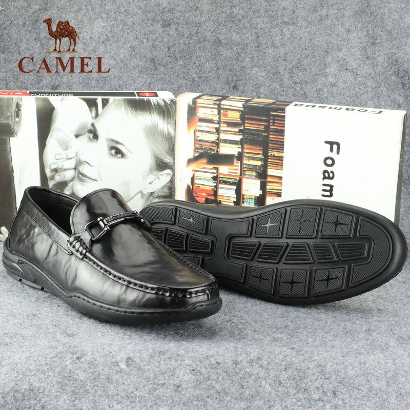 骆驼休闲头层牛皮豆豆鞋软底透气