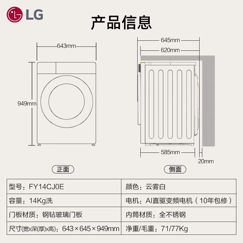 【全民补贴】LG家用全自动滚筒洗衣机智能直驱变频大容量FY14CJ0E