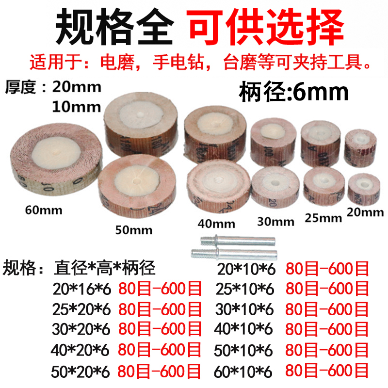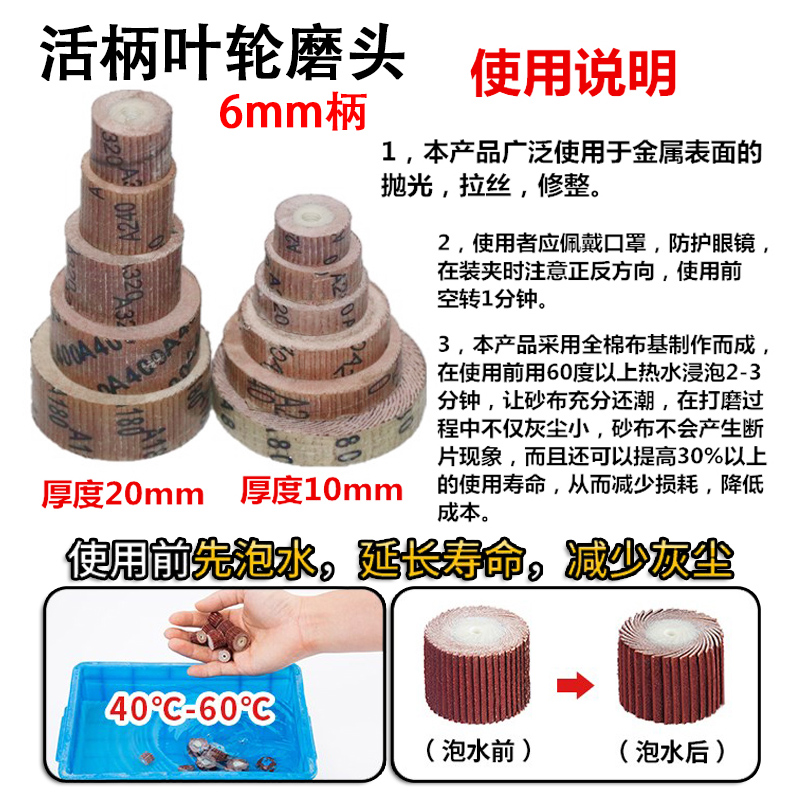 热销活柄百叶轮磨头6mm带柄砂布轮打磨头木工砂纸抛光轮20-50MM电