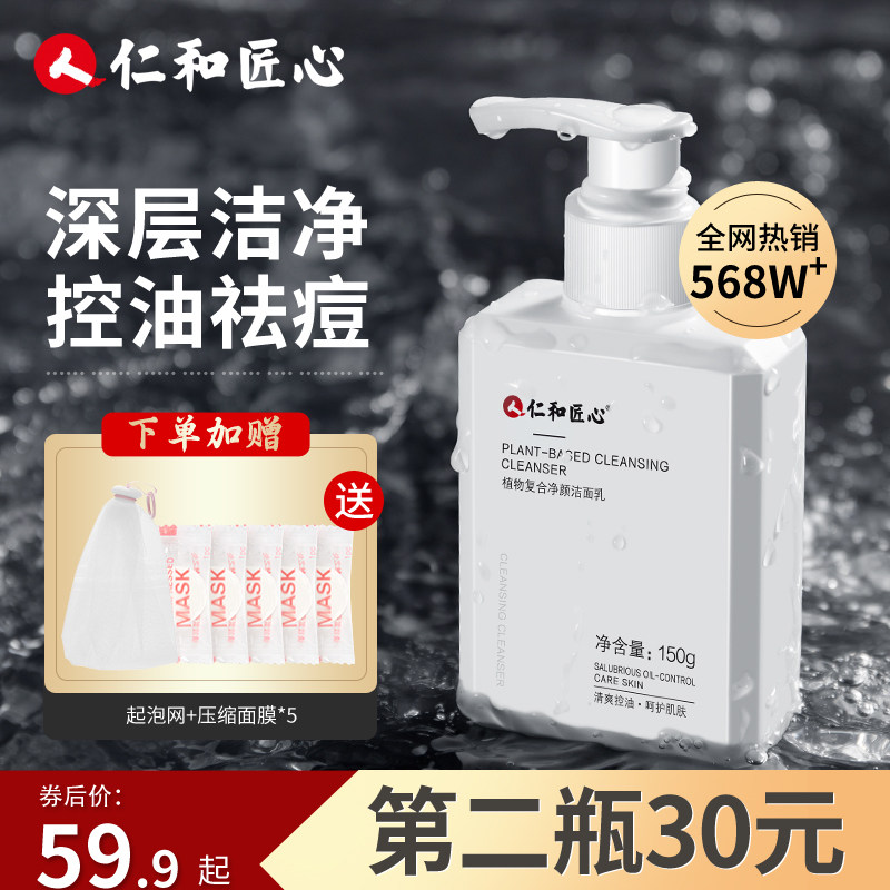 仁和匠心洗面奶男士专用控油祛痘去黑头氨基酸洁面乳官方旗舰正品