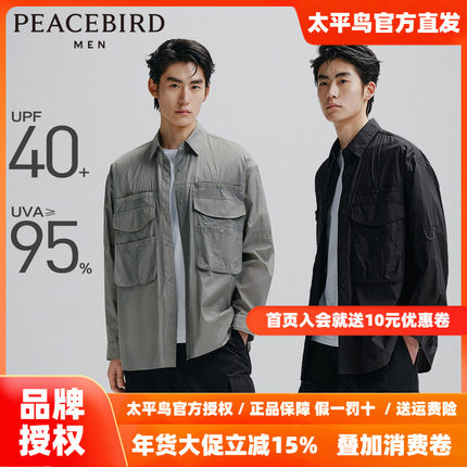 【UPF40+】太平鸟男装工装防晒服潮流多口袋户外皮肤衣钓鱼夹克