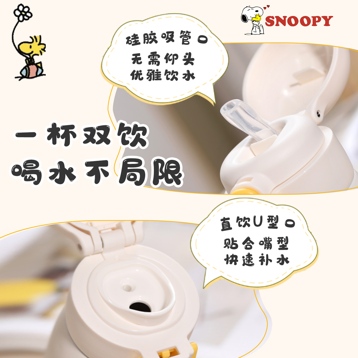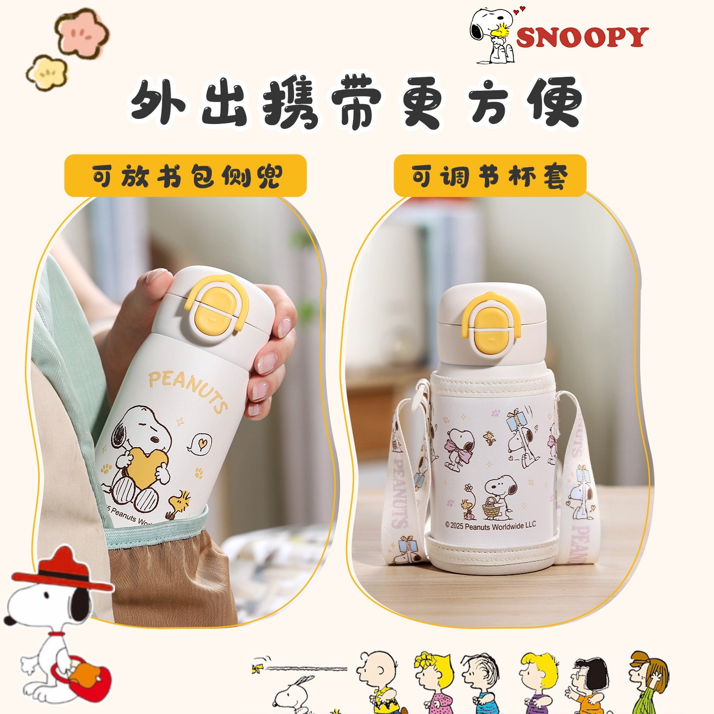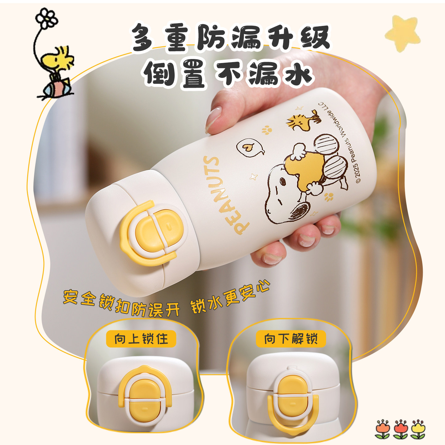 史努比儿童迷你保温杯小学生上学专用幼儿园男女款便携吸管水杯子