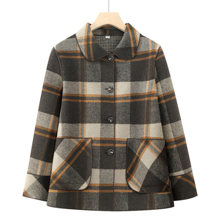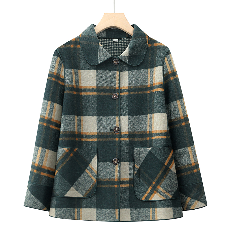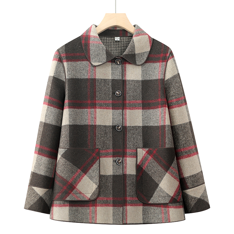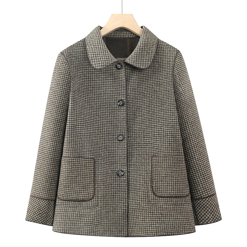 两面穿千鸟格双面呢子大衣中老年女新款减龄时尚妈妈装毛呢外套潮