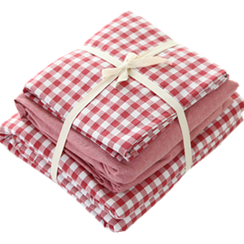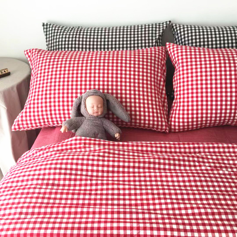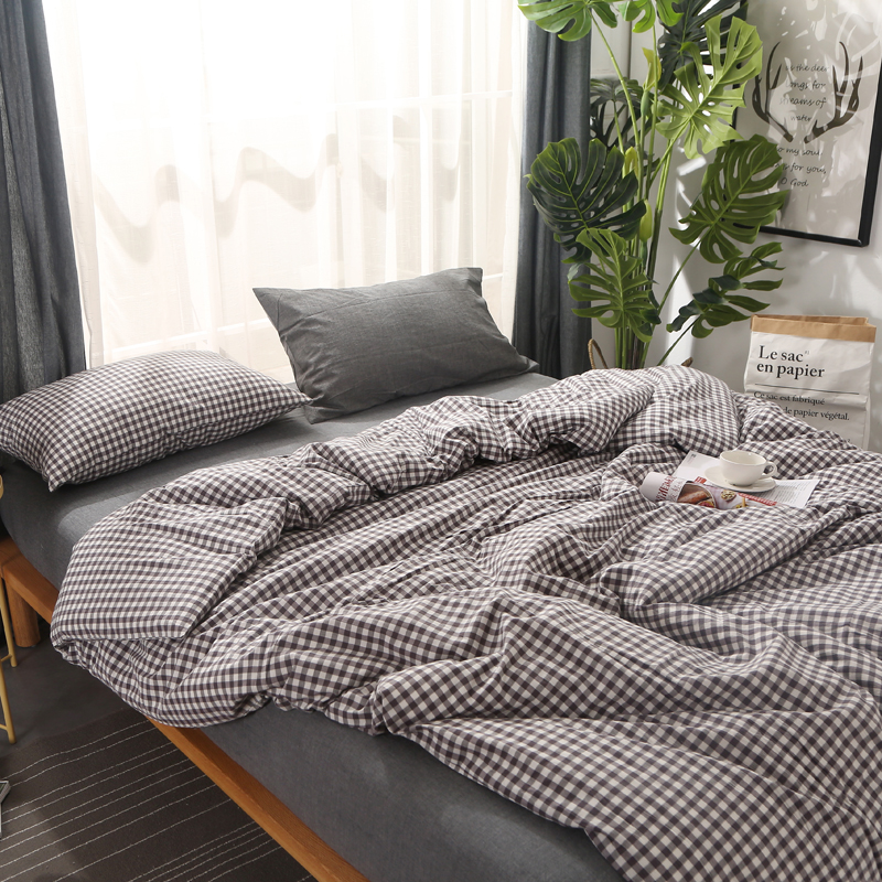 无印水洗棉四件套全棉格子棉麻宿舍三件套纯棉被套床单床上用品