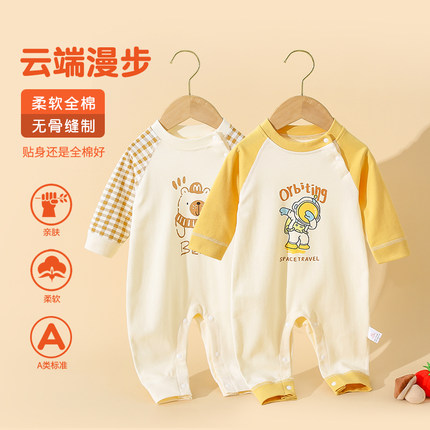 新生婴儿儿衣服春秋连体衣纯棉满月宝宝肩扣哈衣爬服冬季保暖睡衣