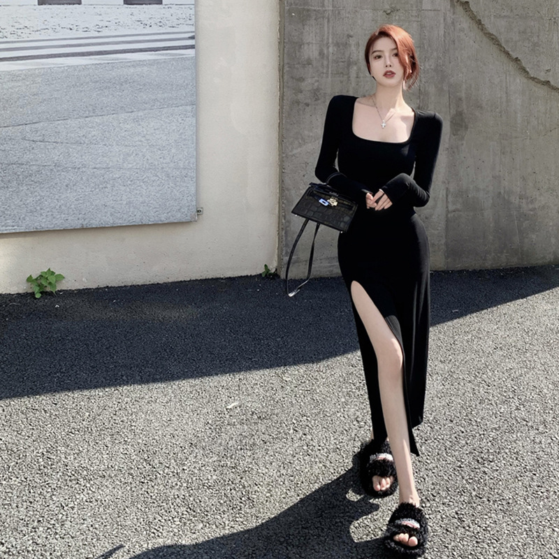 御姐内搭配大衣别致包臀裙女秋新款收腰显瘦独特开叉性感连衣裙