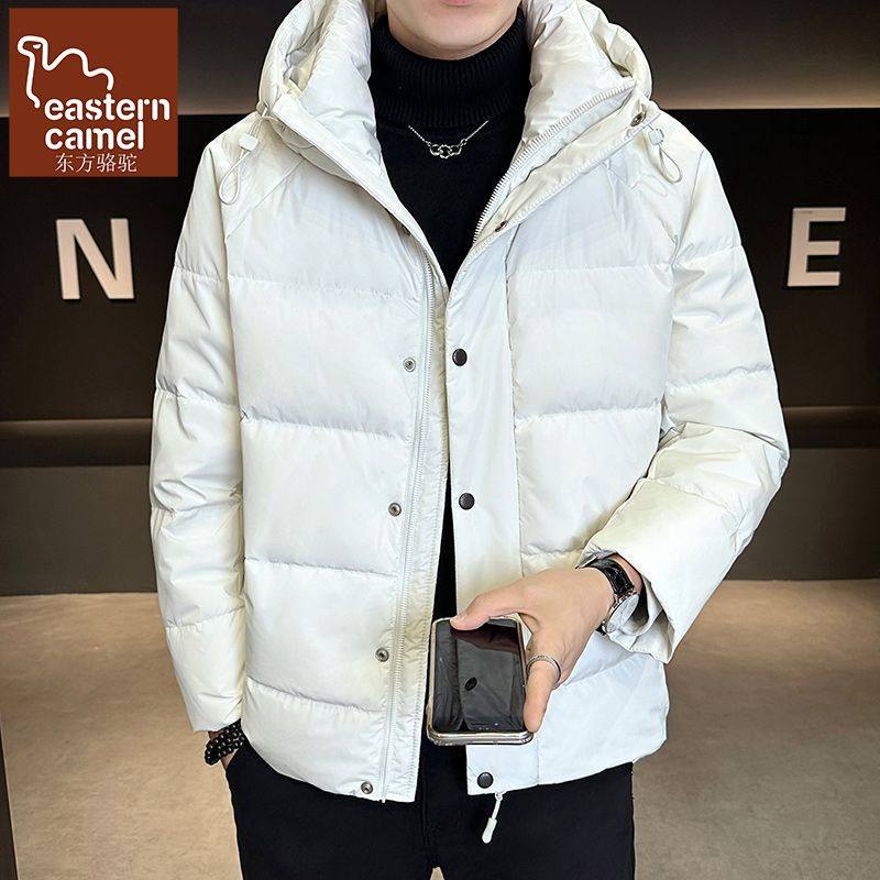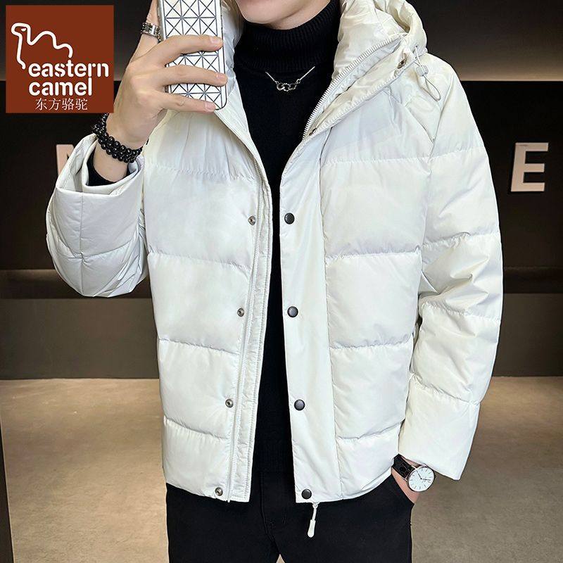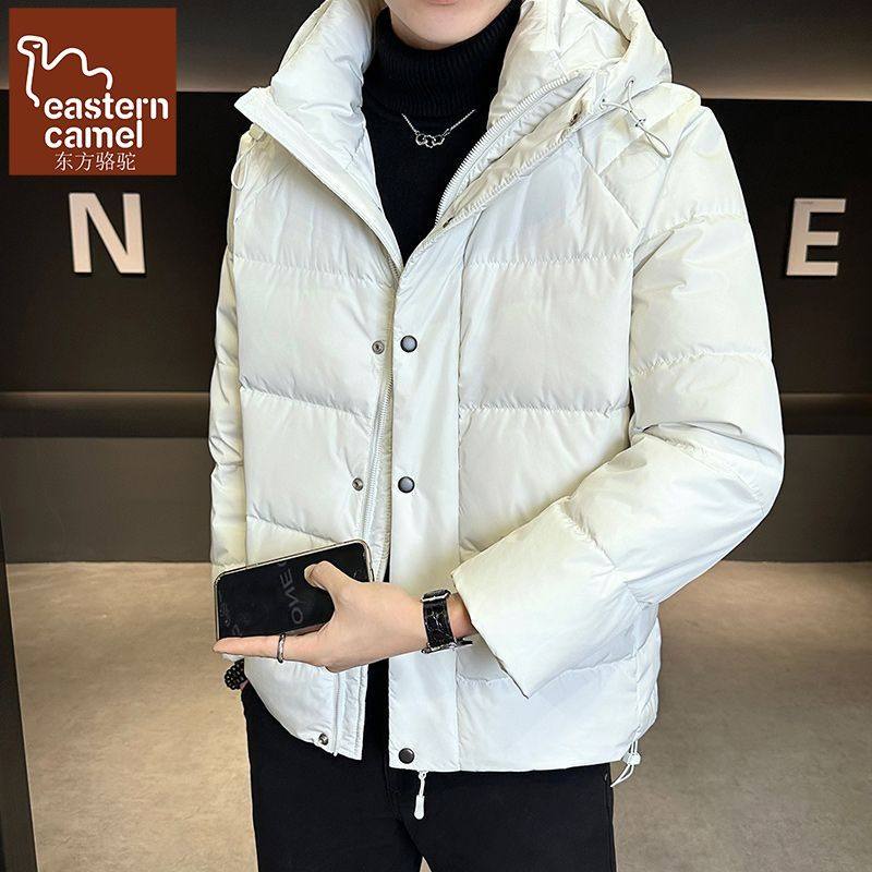 冬季男士短款加厚保暖羽绒服白鸭绒高中生连帽外套派克服初中学生