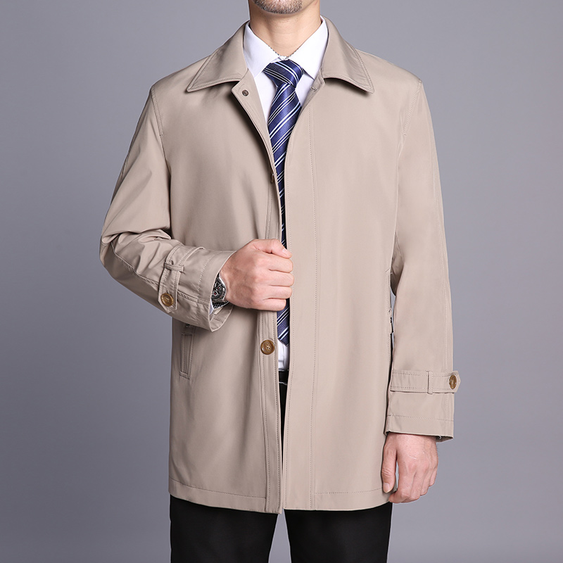 春秋翻领爸爸装中老年人薄款风衣
