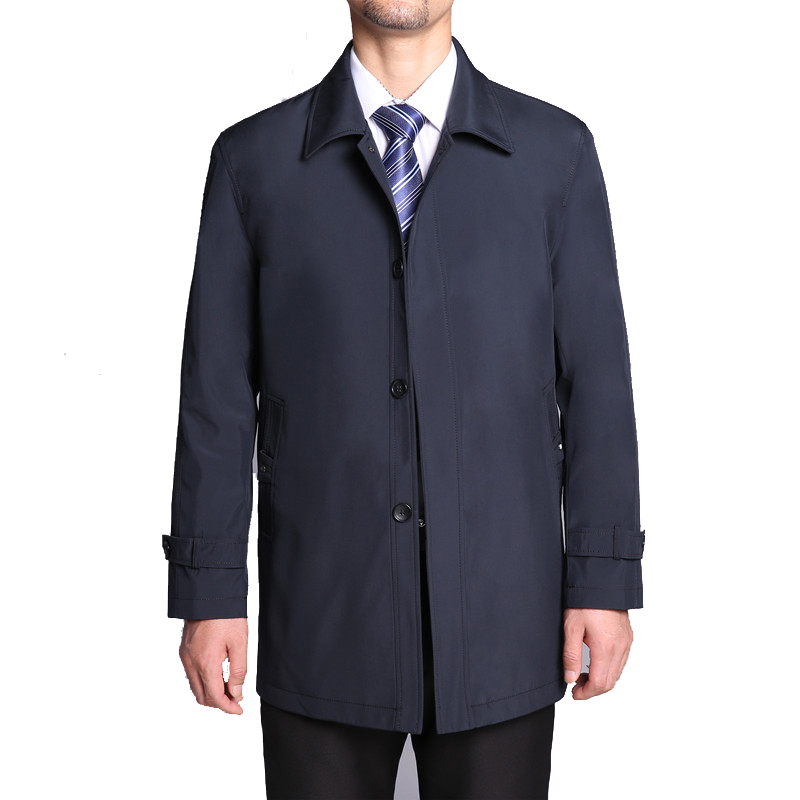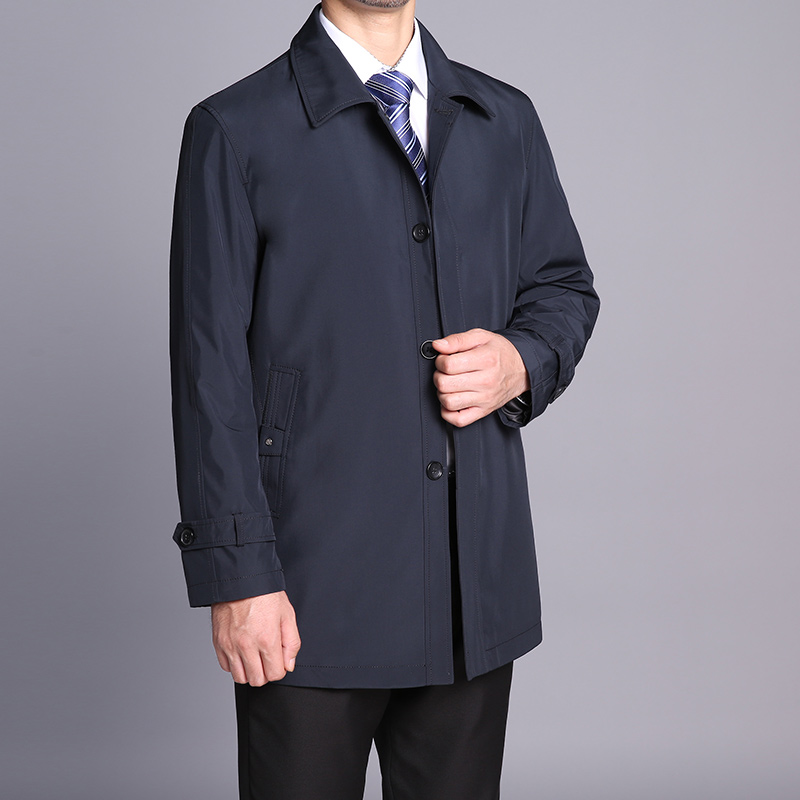 中年男士风衣中长款春秋男外套翻领休闲爸爸装中老年人薄款风衣男