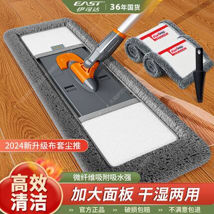 伊司达免手洗平板拖把家用瓷砖地一拖净旋转懒人拖地器地拖敦布