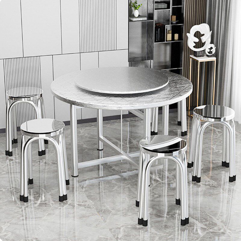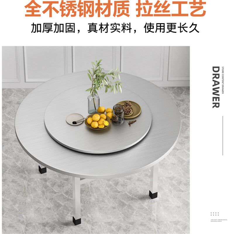 304不锈钢圆桌家用餐桌转盘食堂饭店餐饮大排档折叠桌子收纳台面