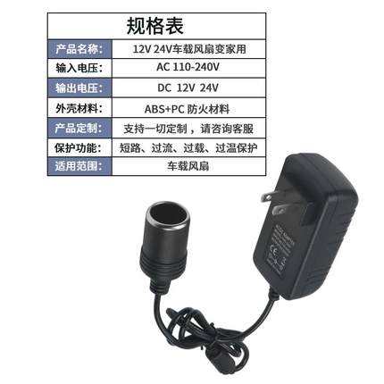 220V转12V24V汽车直流电源转换器变点烟线母座车载小风扇记录仪器