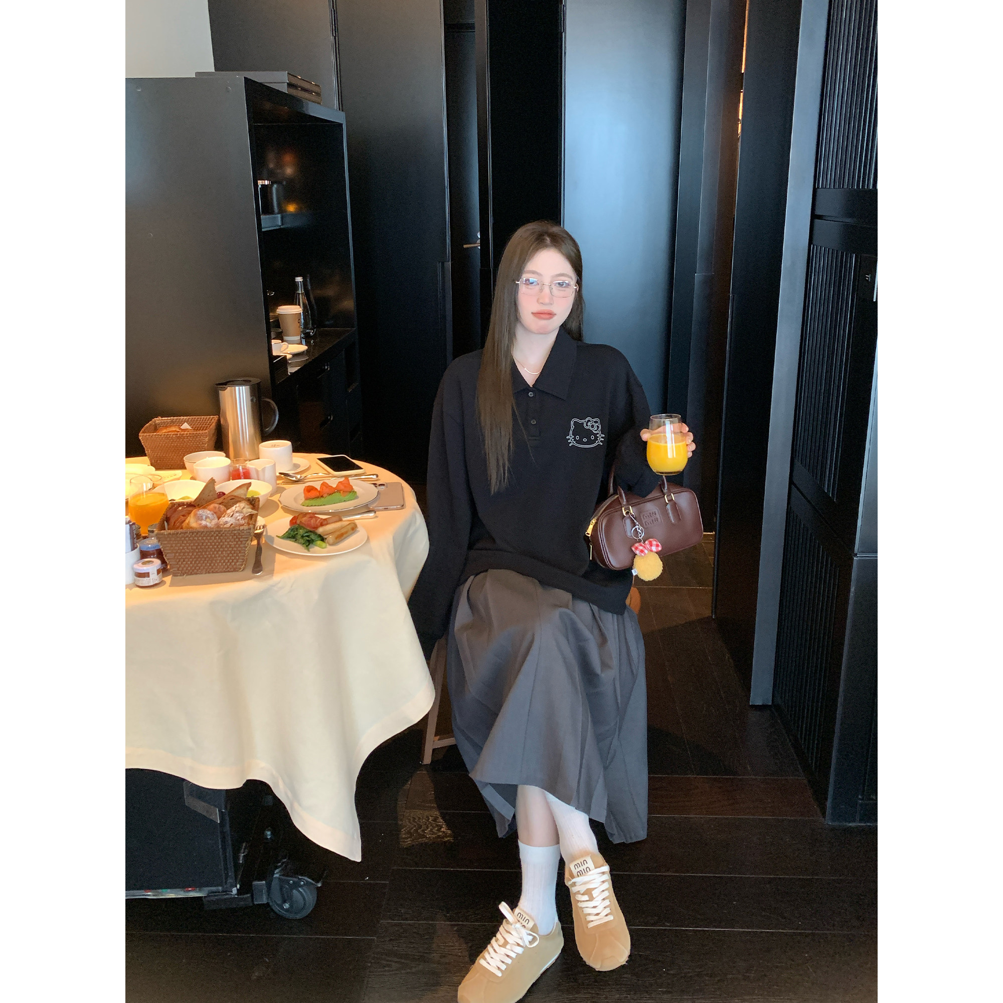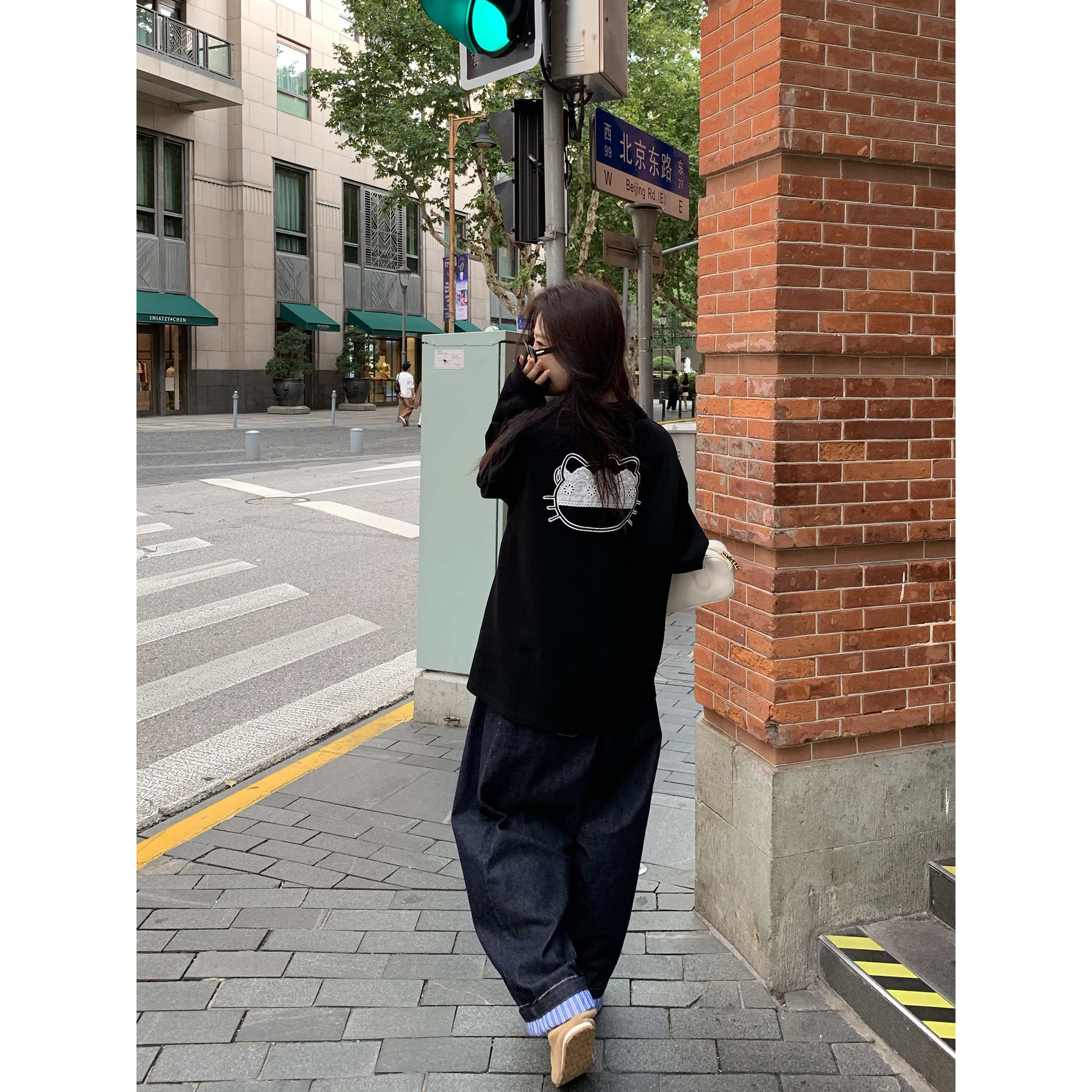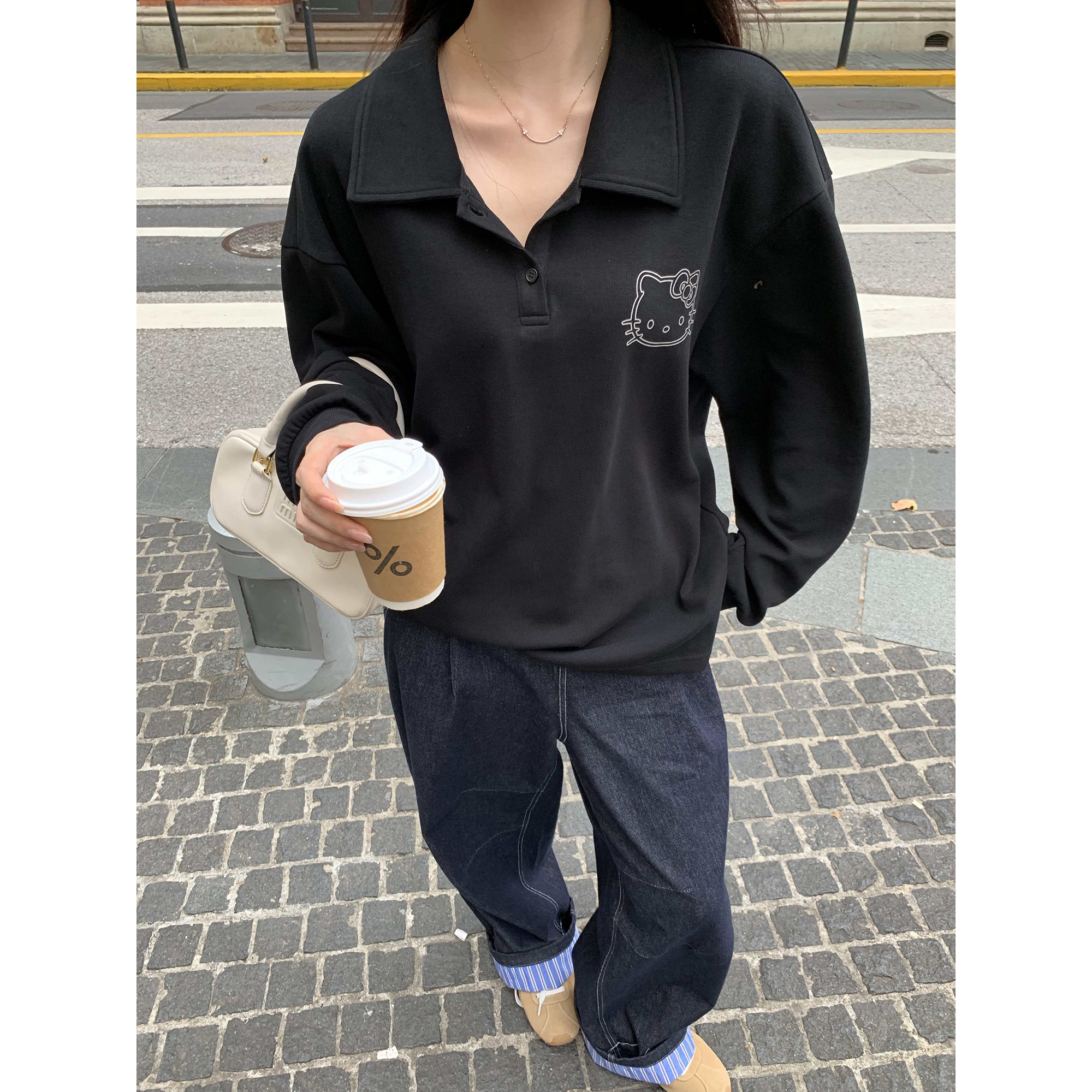 NAZ那子大码秋季曼巴棉蕾丝萌头童趣kt刺绣polo领T恤胖mm休闲上衣
