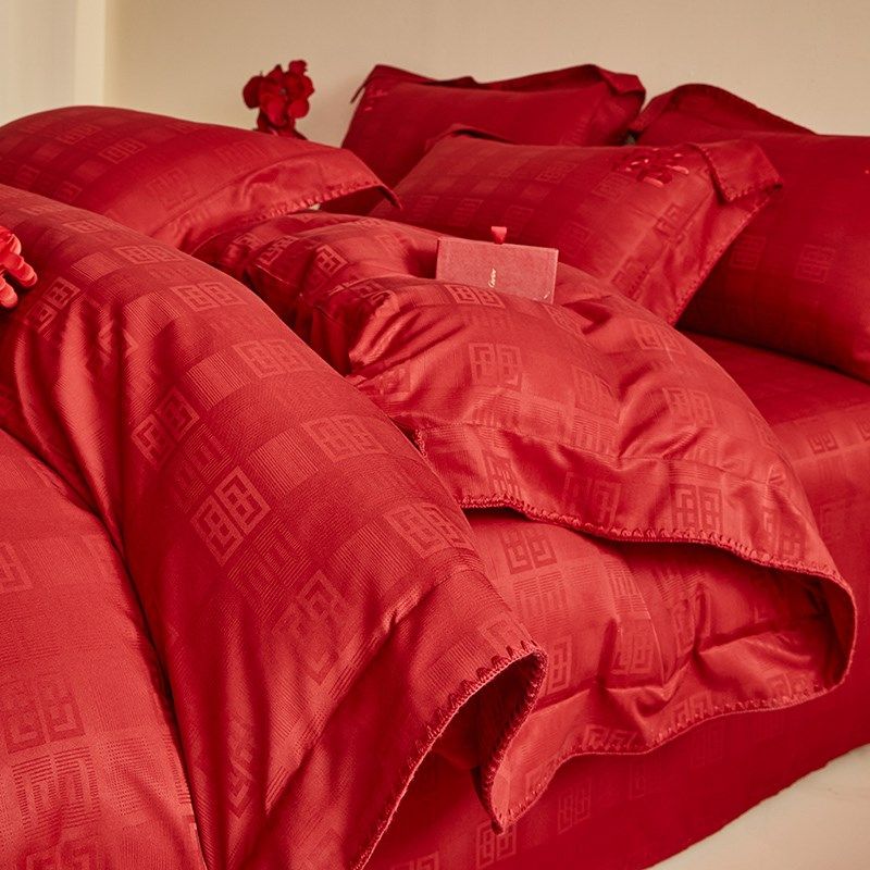 新中式简约刺绣婚庆四件套红色被套床单结婚床上用品新婚陪嫁