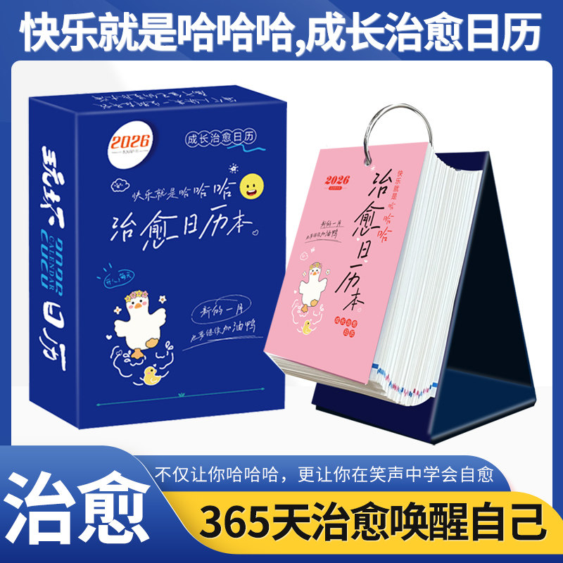 快乐日历2026年彩虹屁365天元气满满解压治愈日历正版文艺简约桌面摆件卡通创意新年礼物趣味解压翻页日历
