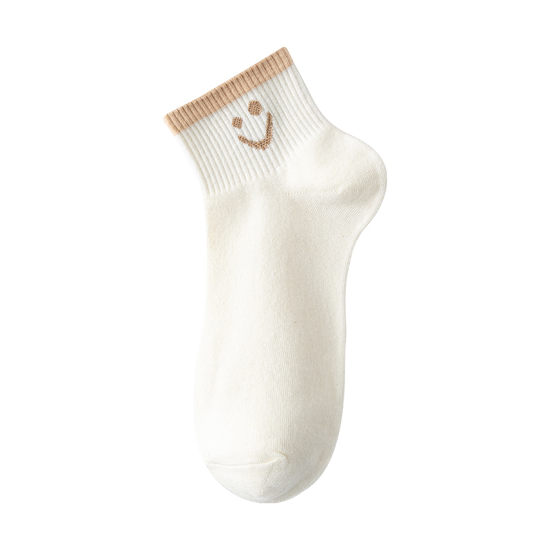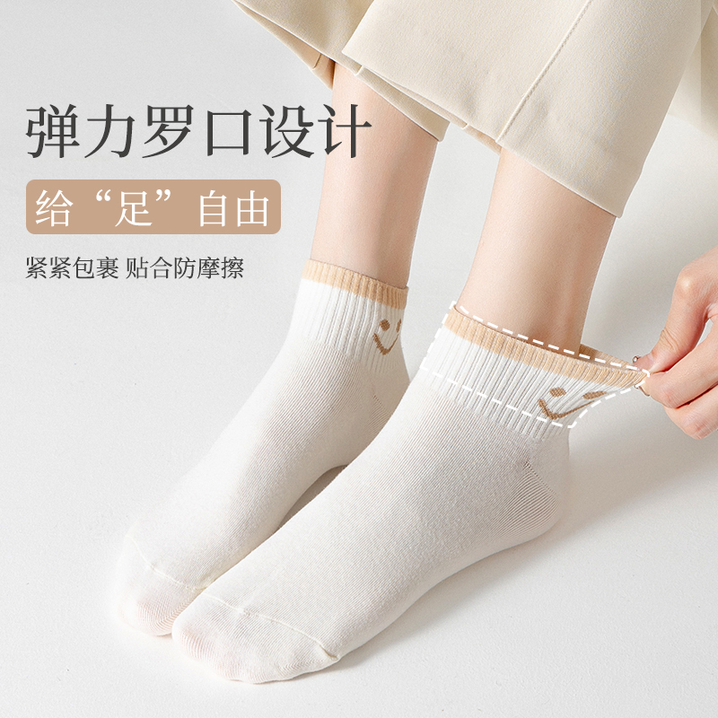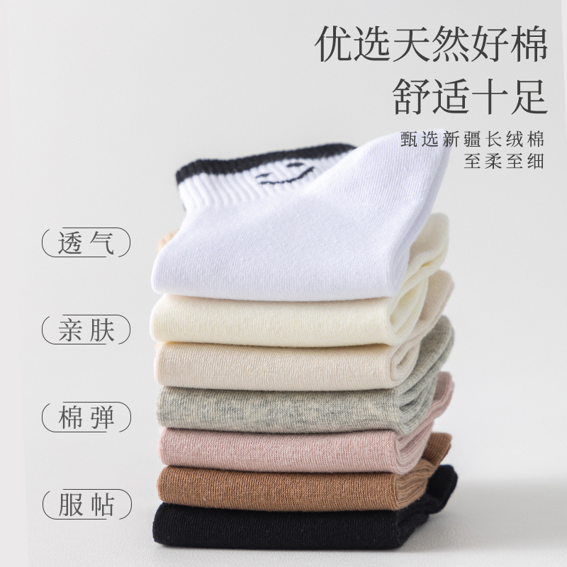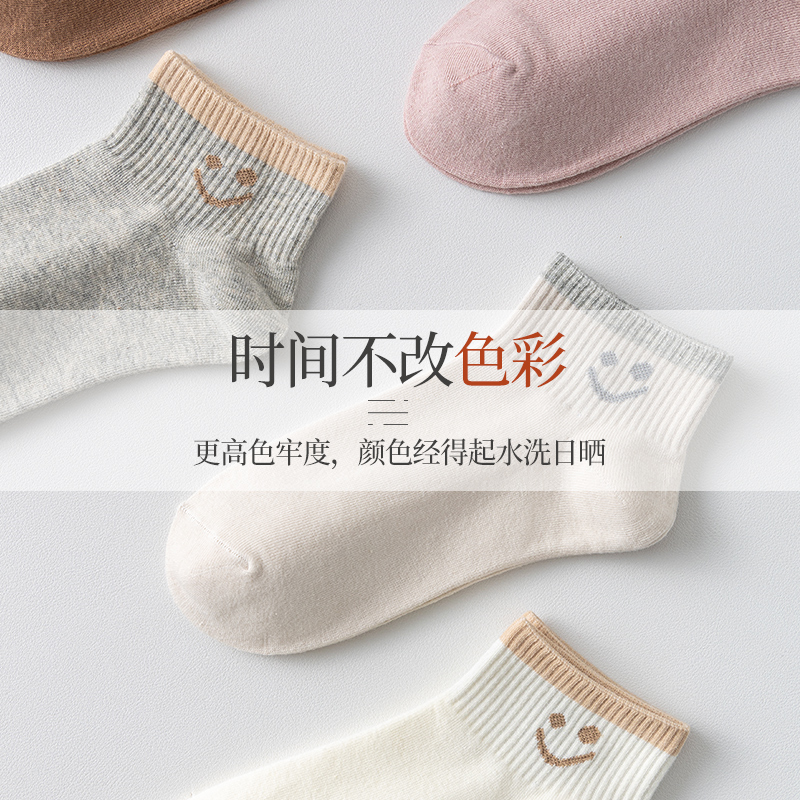 防臭女士袜子纯棉短袜春秋季诸暨吸汗透气运动短筒袜可爱笑脸防滑