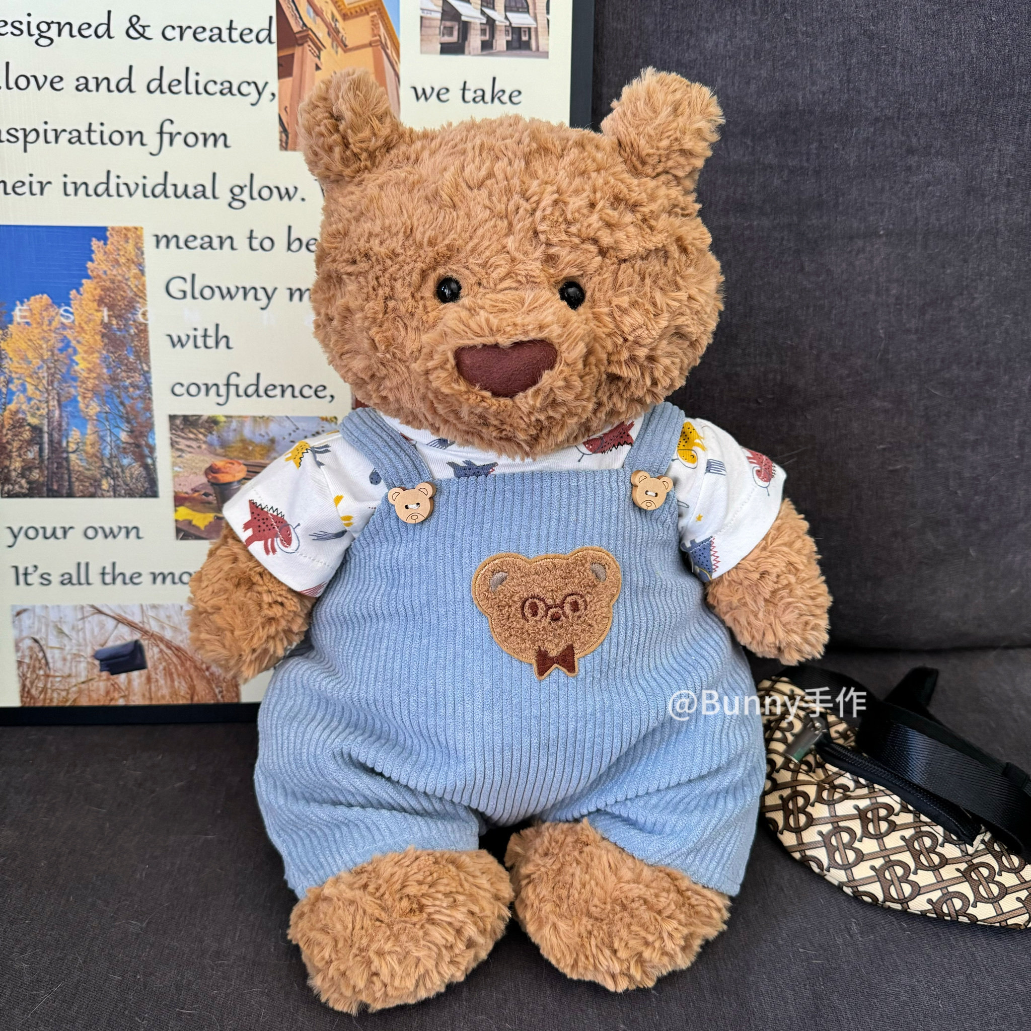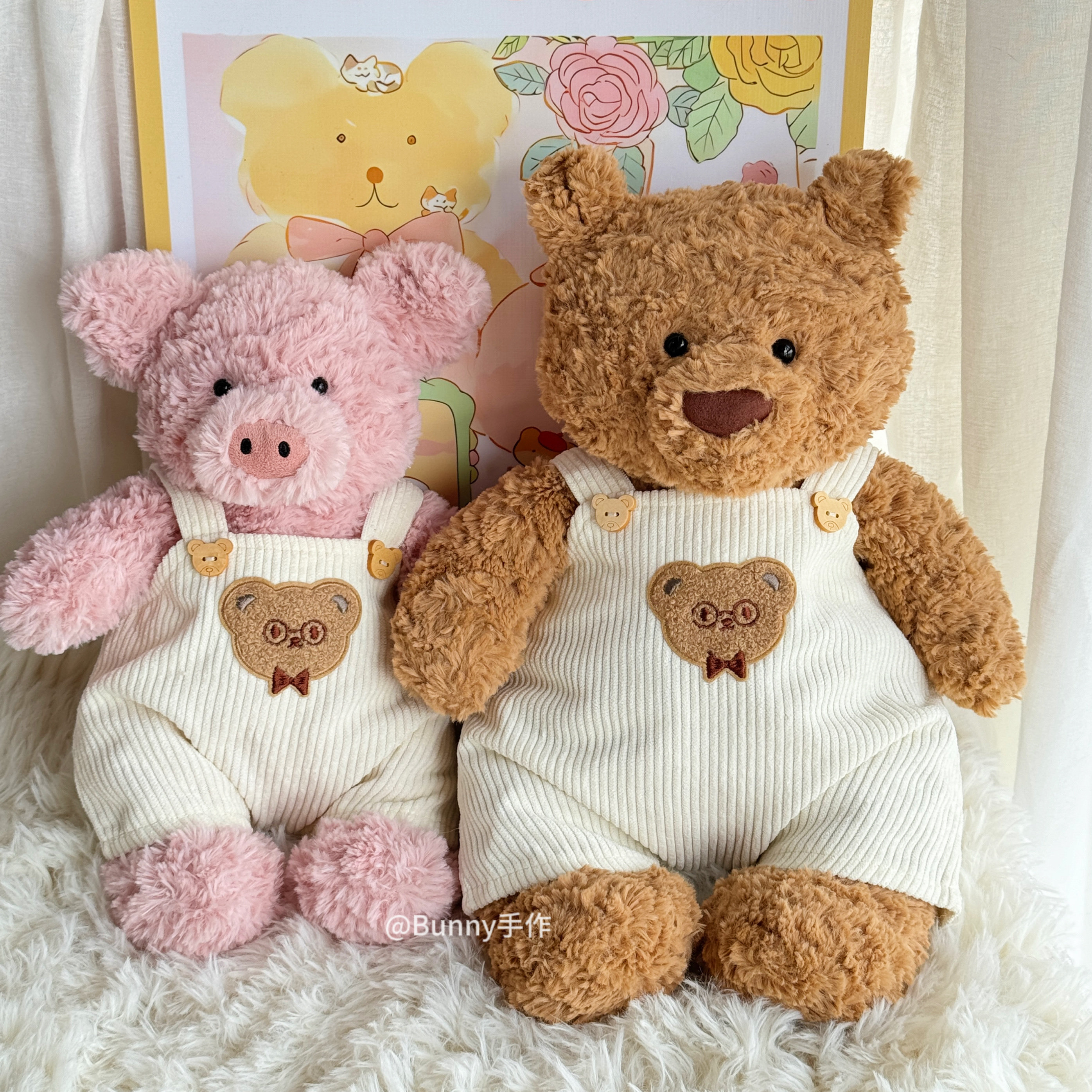 巴塞罗熊衣服背带裤灯芯绒连体裤可爱小熊搭配打底T恤