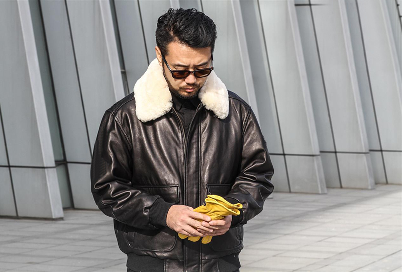柔软绵羊皮真皮飞行夹克皮衣