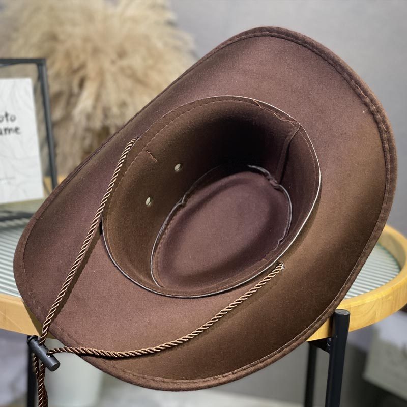 纯色西部牛仔帽子男女户外旅游防晒遮阳登山帽藏族毛呢帽休闲百搭