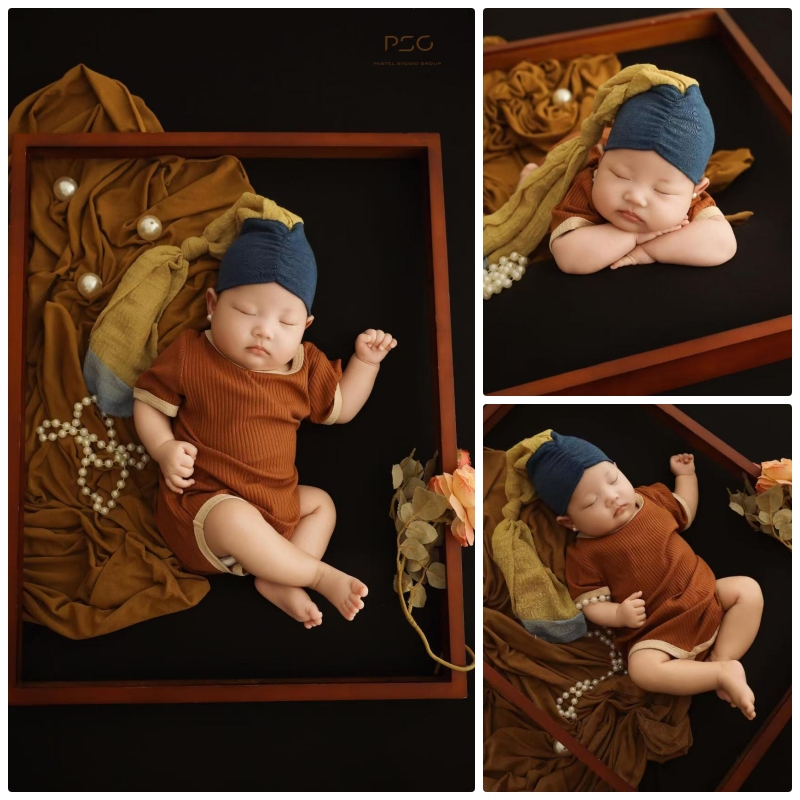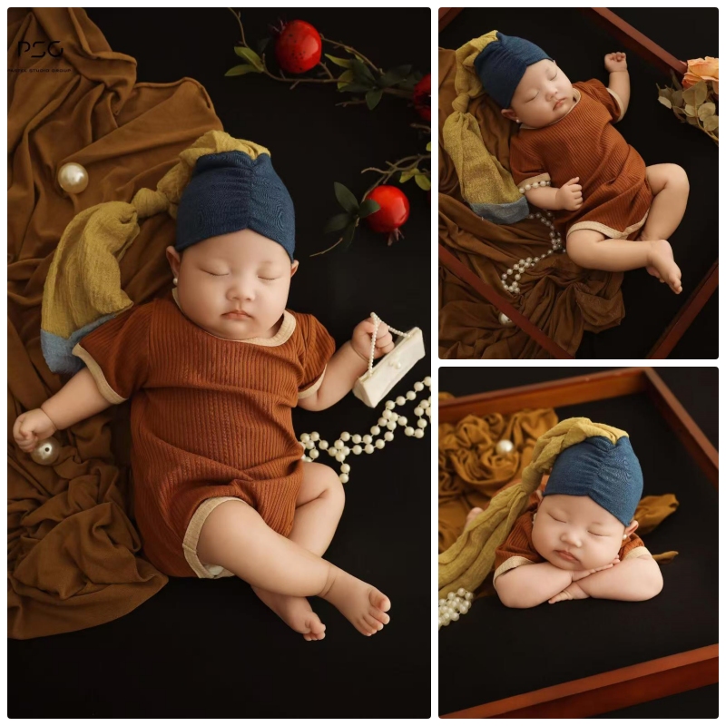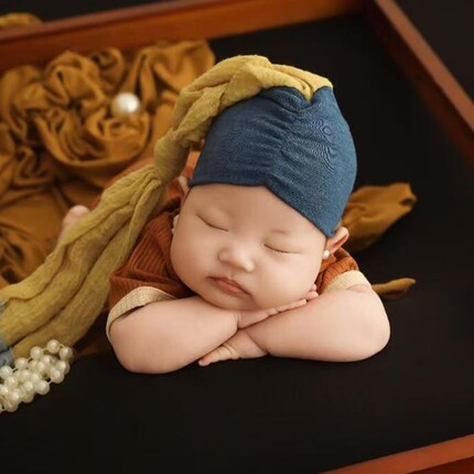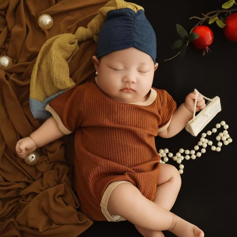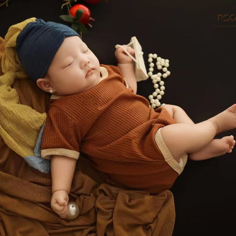 儿童摄影服装油画风珍珠少女新生儿女宝宝百天照周岁照拍照服道具