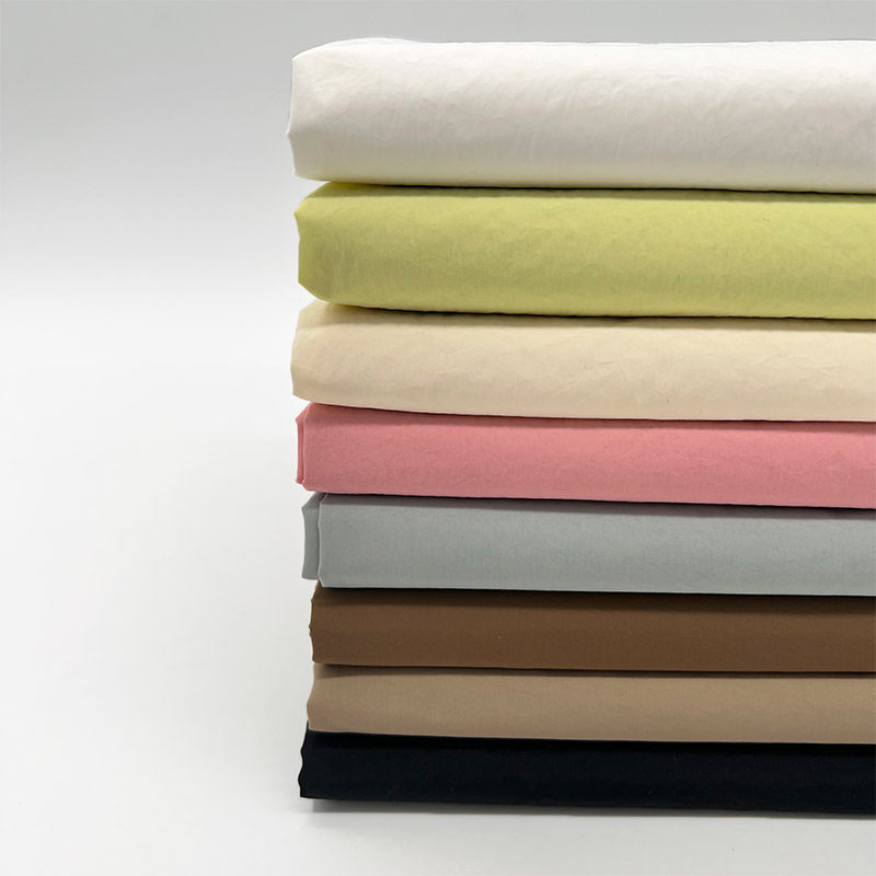 新款防水羽绒服布料纸感绉微皱工艺秋冬薄款棉服夹克衬衫服装面料