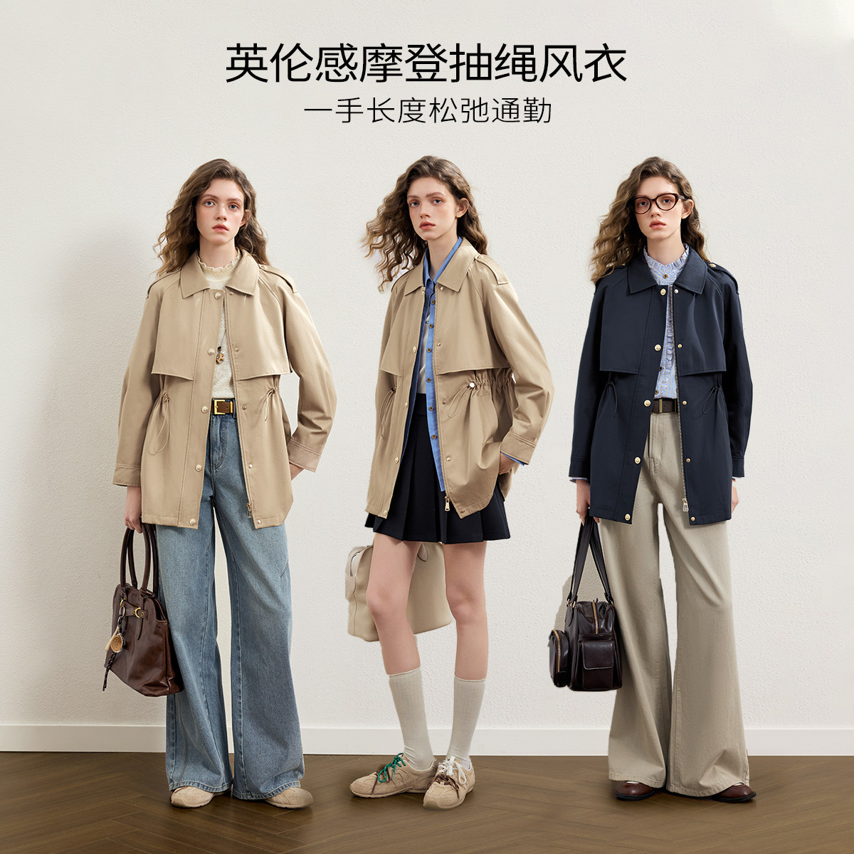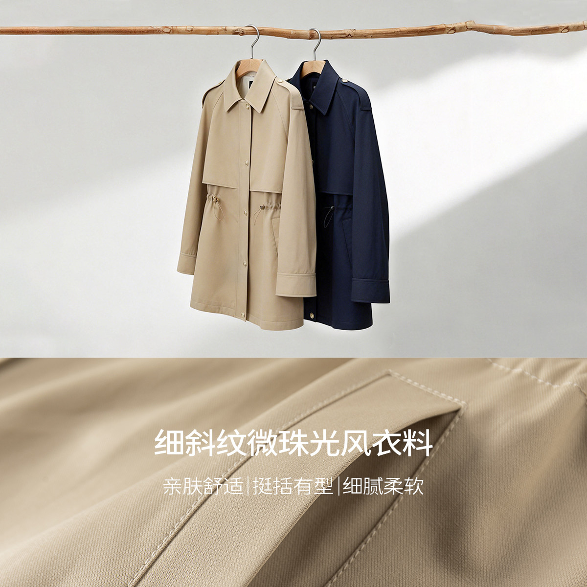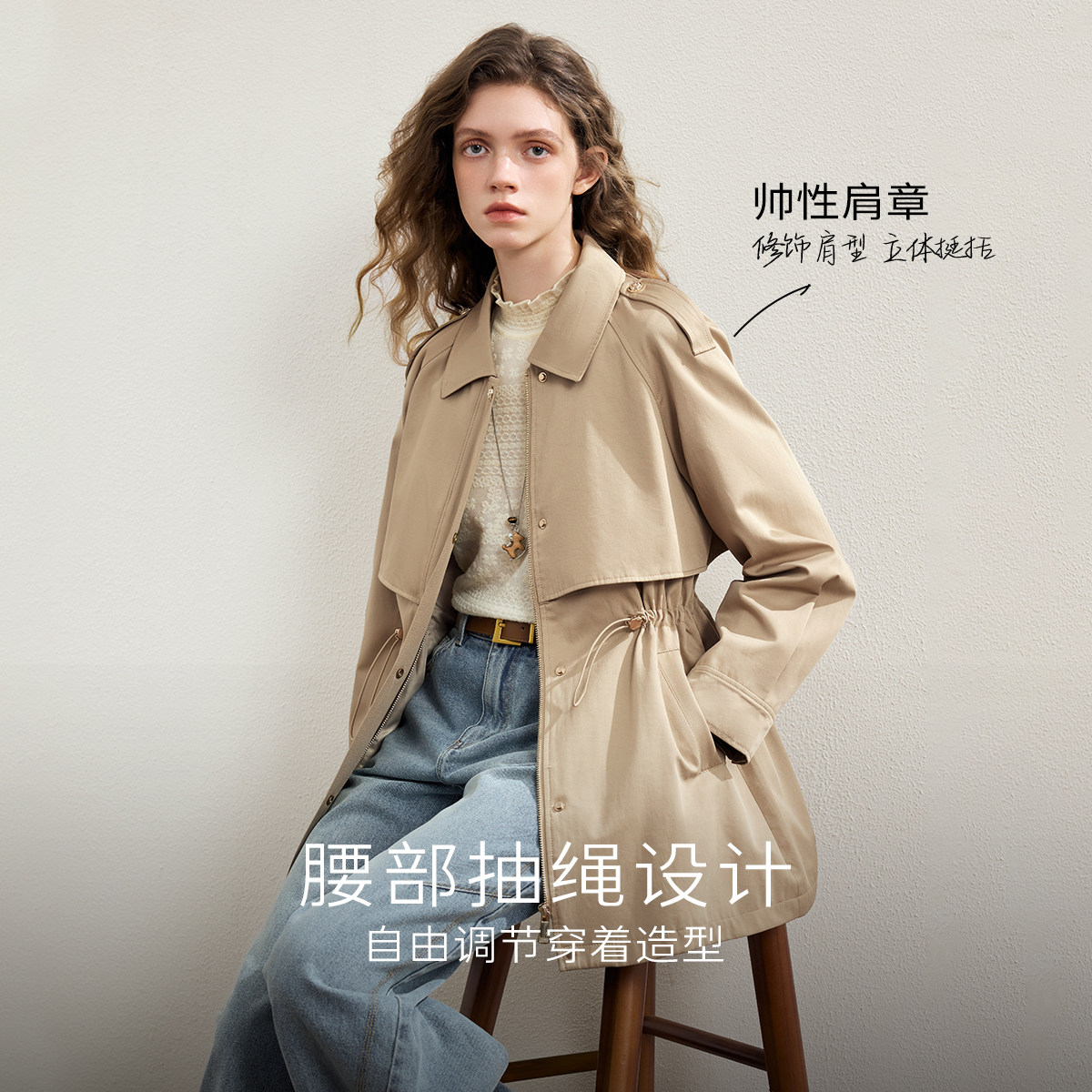 KBNE2025新款卡其色长袖气质百搭风衣外套长款英伦风大衣春秋女