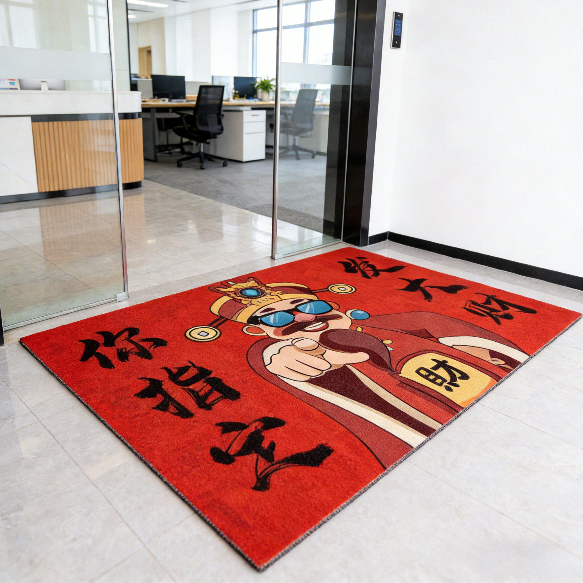 办公室开门红地垫马年红色餐饮店防滑门垫定制公司进门口脚垫地毯