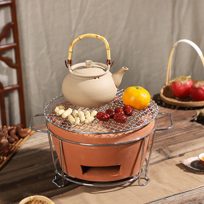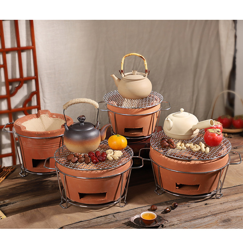 围炉煮茶木炭3-8人红泥陶土碳炉户外野餐烧烤火锅打边炉耐火陶壶