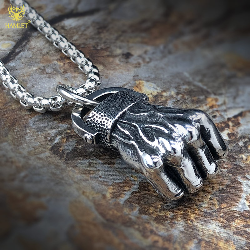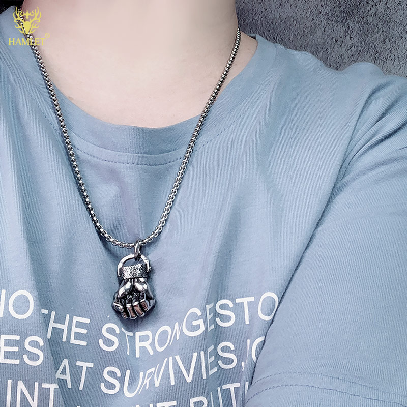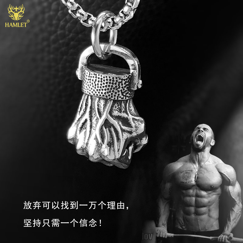 欧美健身拳头吊坠男运动项链潮男励志钛钢饰品哑铃自律型男配饰
