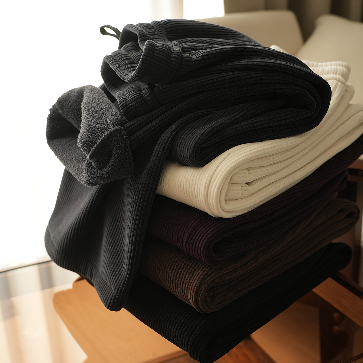 162cm以上身高穿 一体绒 女士坑条加绒直筒裤显瘦长裤秋冬款 女装