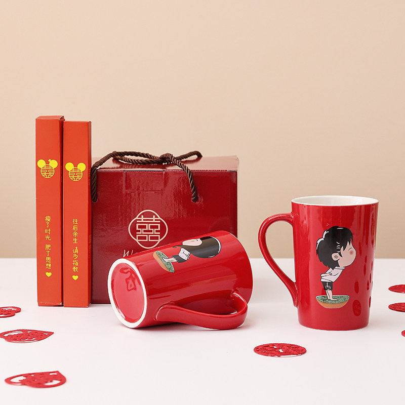 结婚洗漱杯陶瓷情侣漱口杯一对红色牙杯陪嫁婚庆礼盒套装节日送礼
