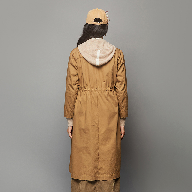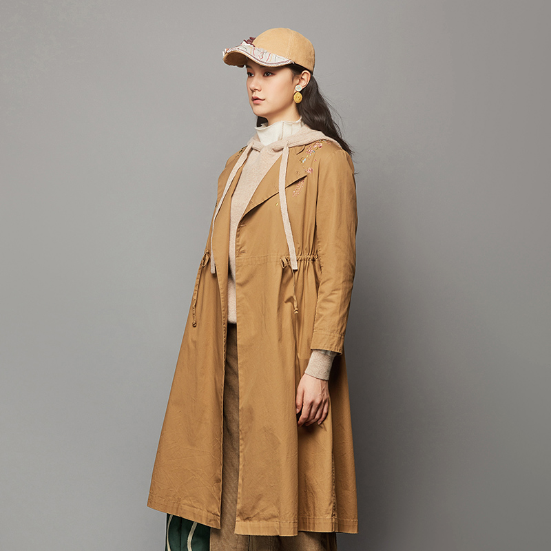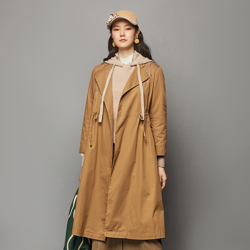 渔牌女装风衣女款新款纯棉全棉抽绳收腰长款时尚外套FGFC3022