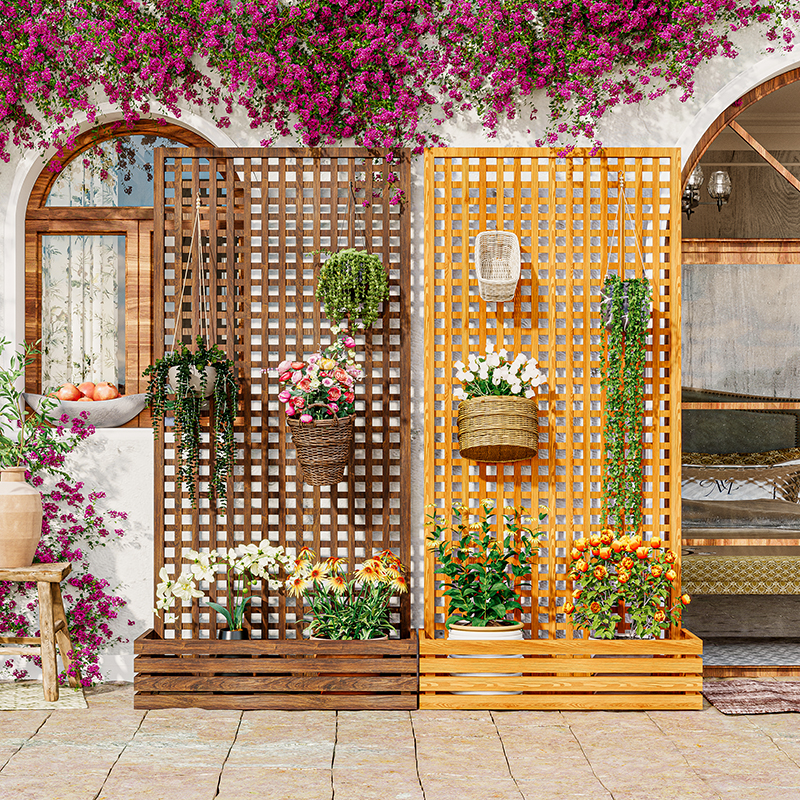 阳台防腐木花架栅栏户外爬藤架隔断网格围栏室P外庭院露台屏风花