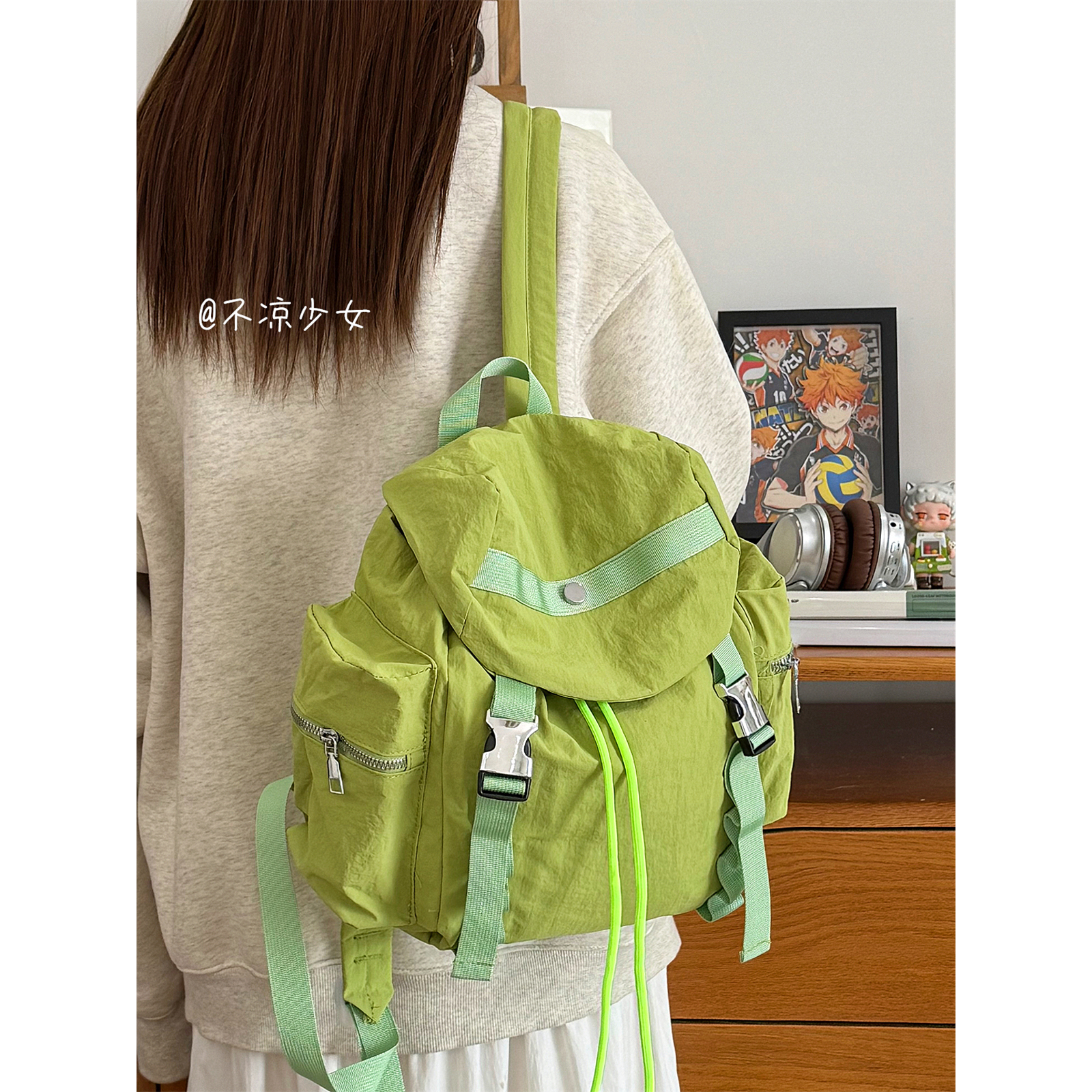绿色轻便防水小书包学生小众设计迷你双肩包徒步登山户外旅行背包