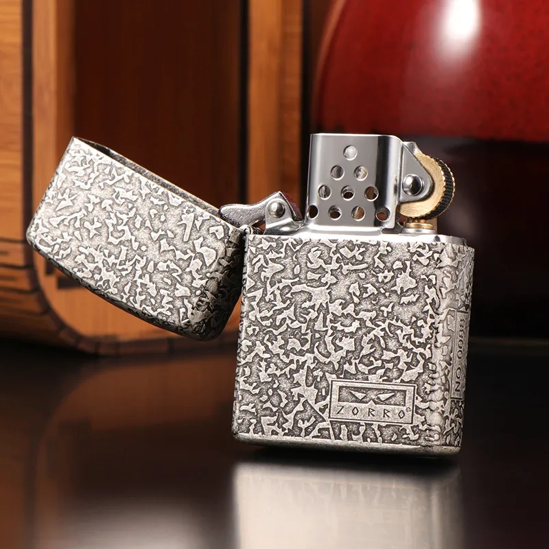 ZORRO/佐罗二代古银纹路煤油打火机复古防风老式怀旧高档礼物男士