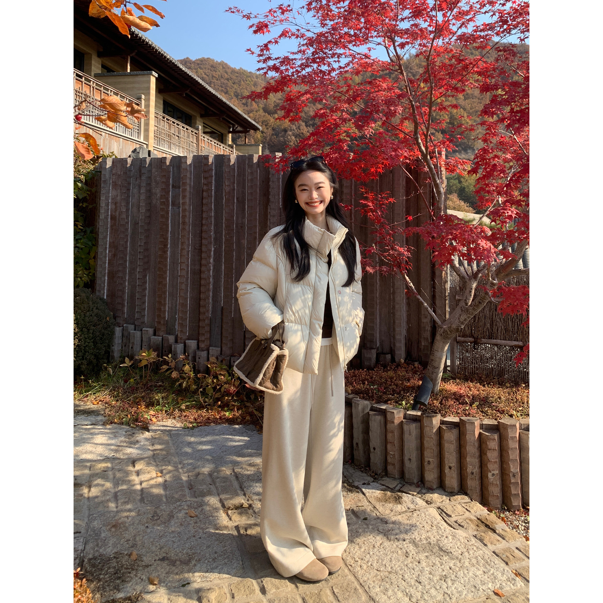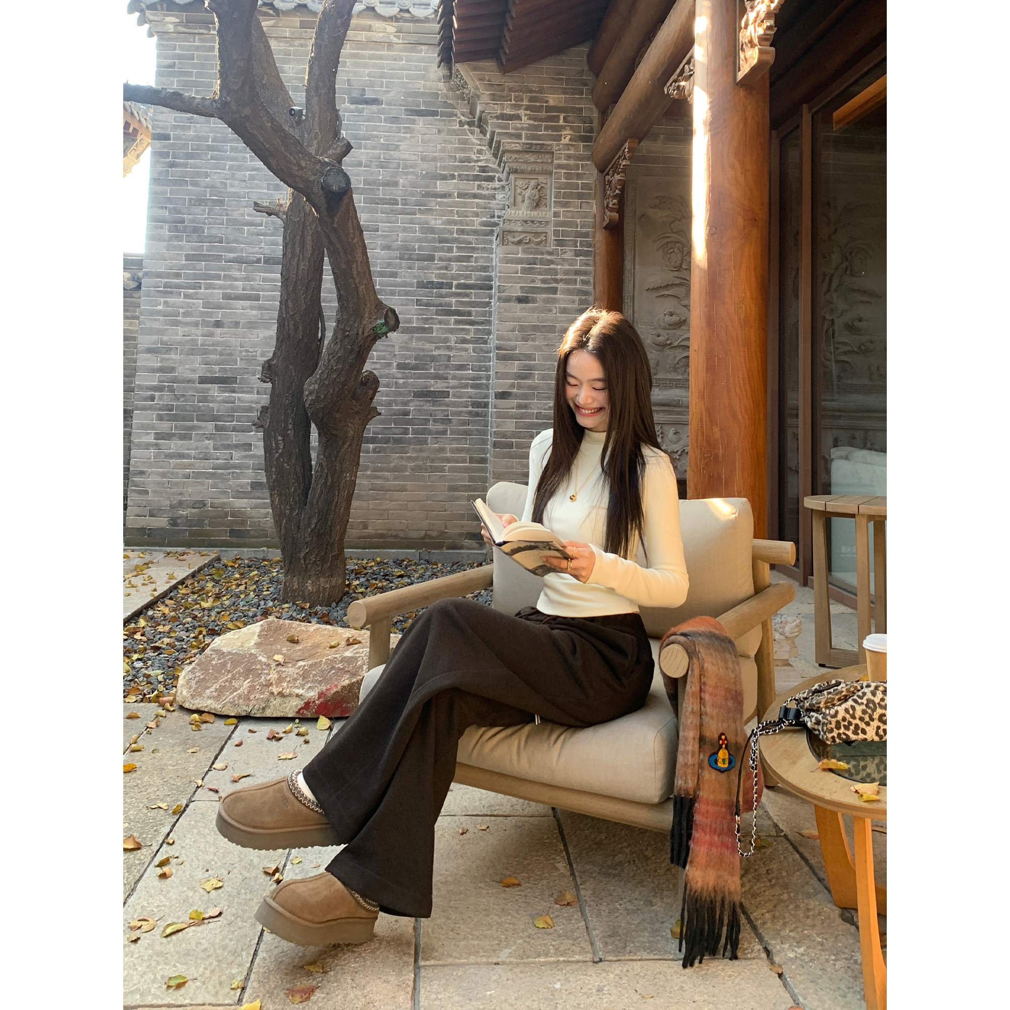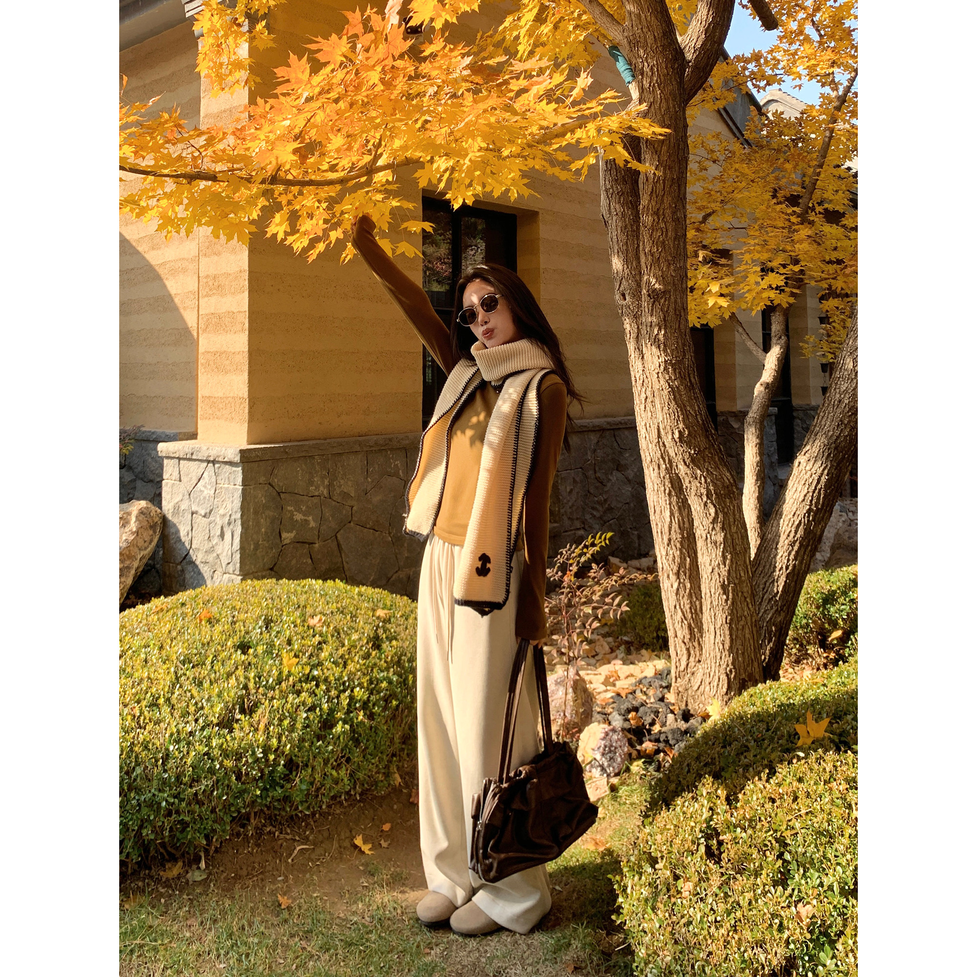 pusumede 百搭系 慵懒感高腰阔腿糯米裤女宽松休闲拖地直筒长裤
