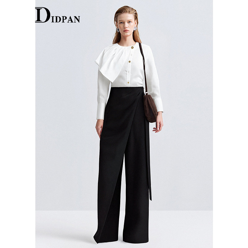 IDPAN简雅都市通勤套装女装艺术感收腰白衬衫阔腿裤26春季新款