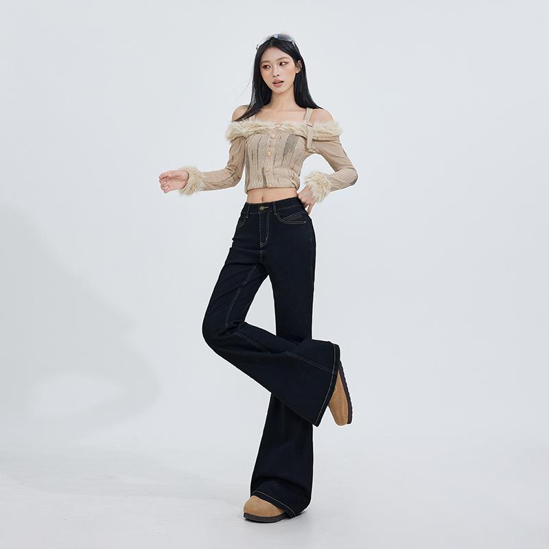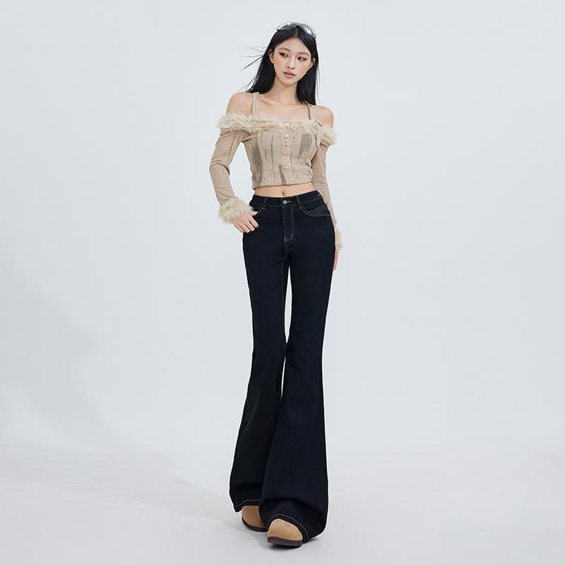 KRO微喇牛仔裤女秋冬季2024新款高腰显瘦小个子美式复古喇叭裤