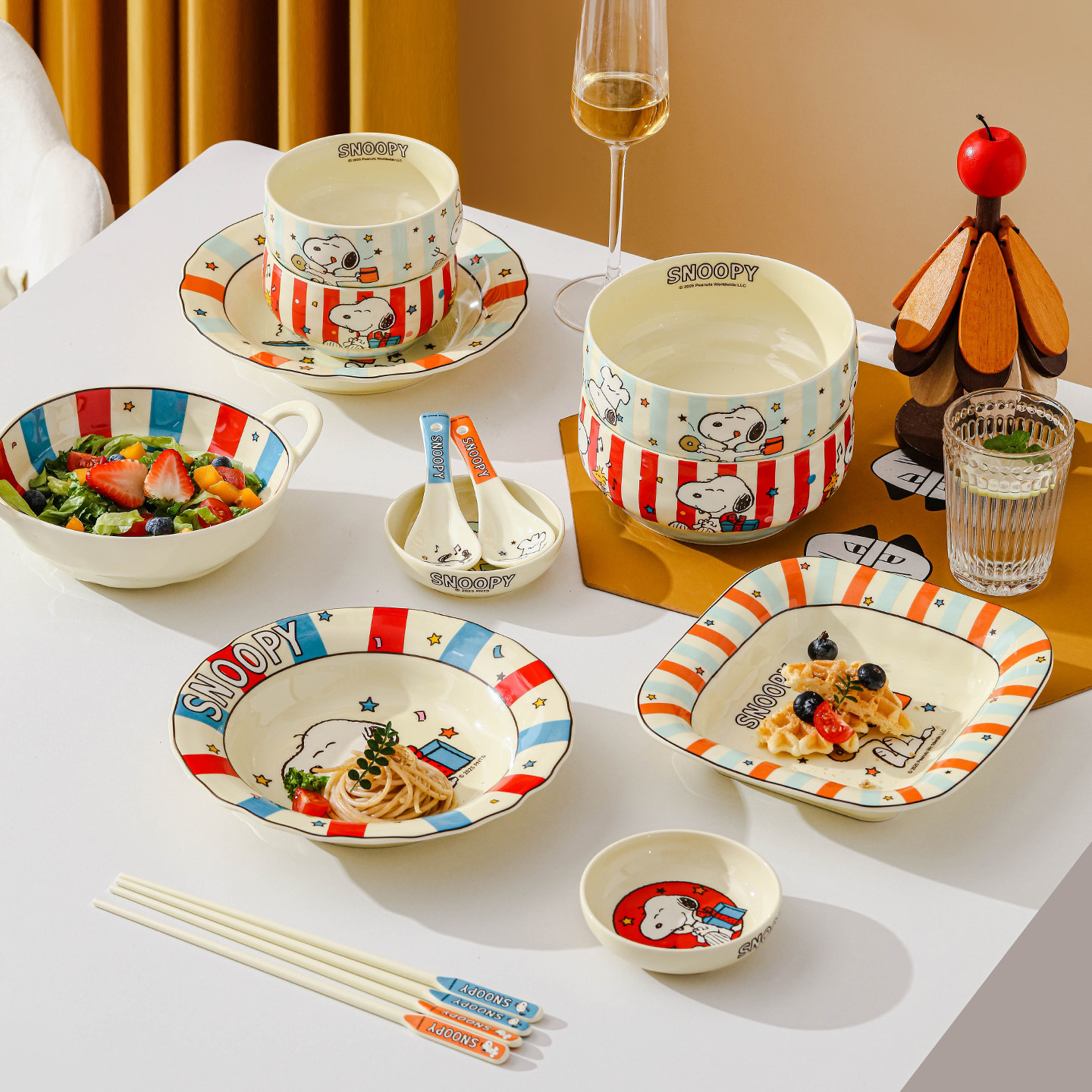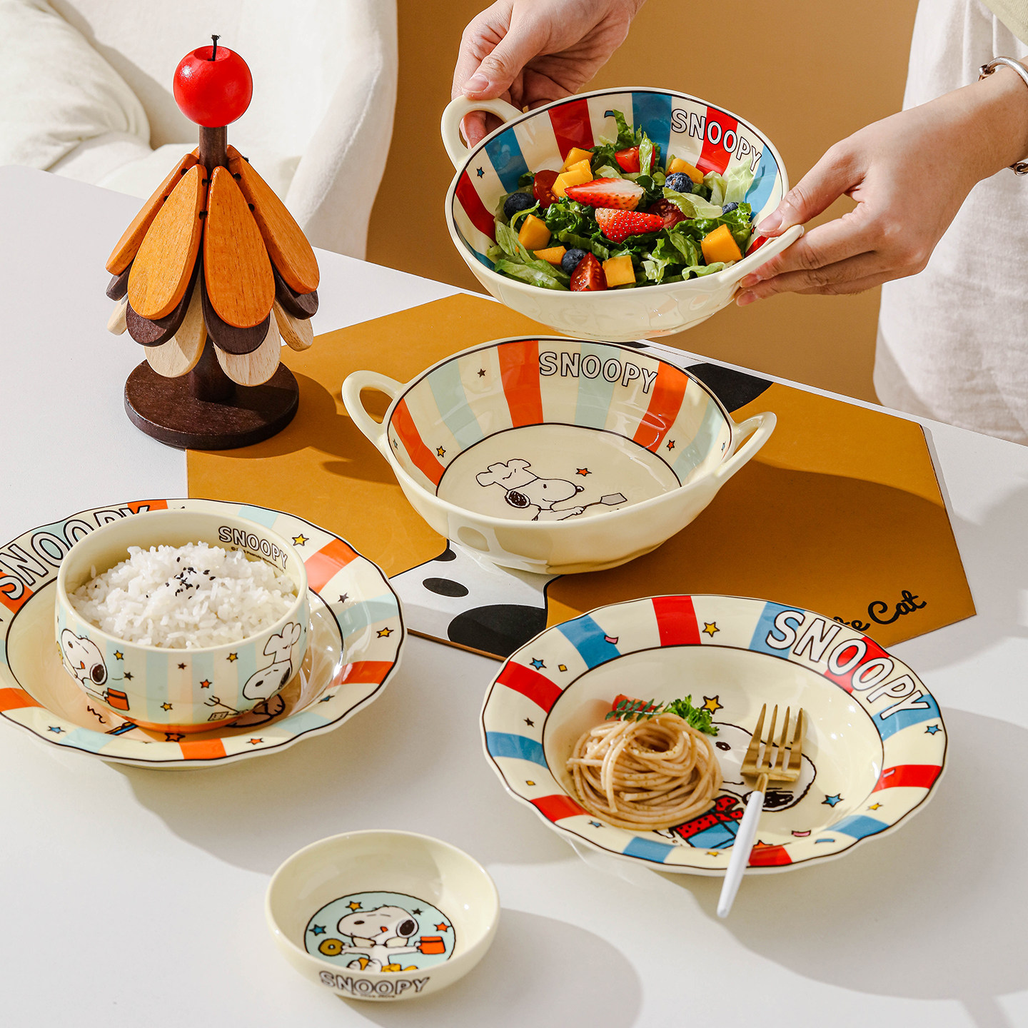 史努比陶瓷碗盘家用可爱个人专用2025新款高颜值米饭碗泡面碗菜盘
