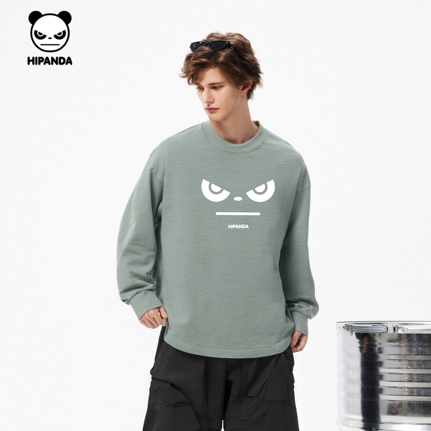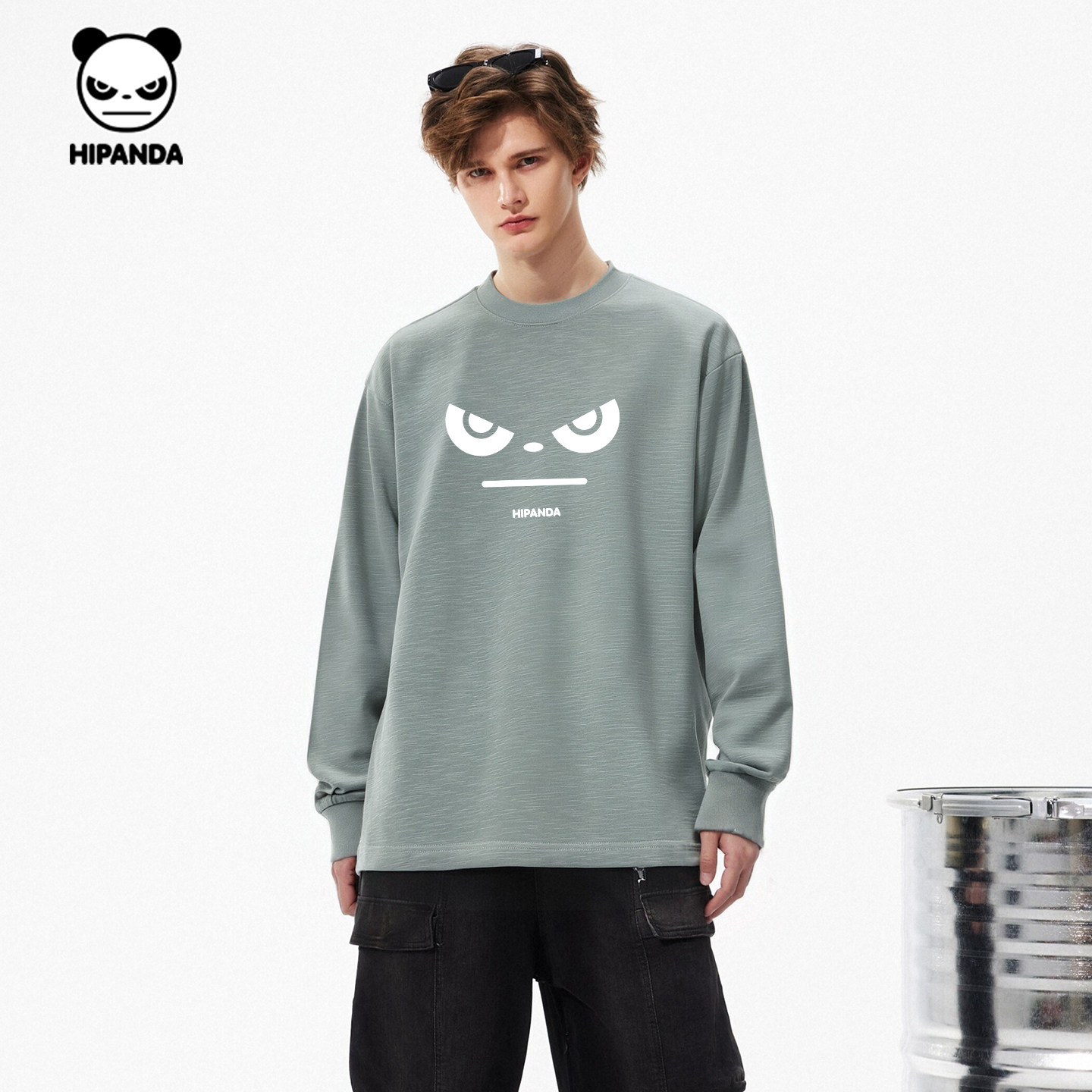 Hipanda你好熊猫竹节纯棉痞帅高街长袖T恤男2026春新款重磅体恤C
