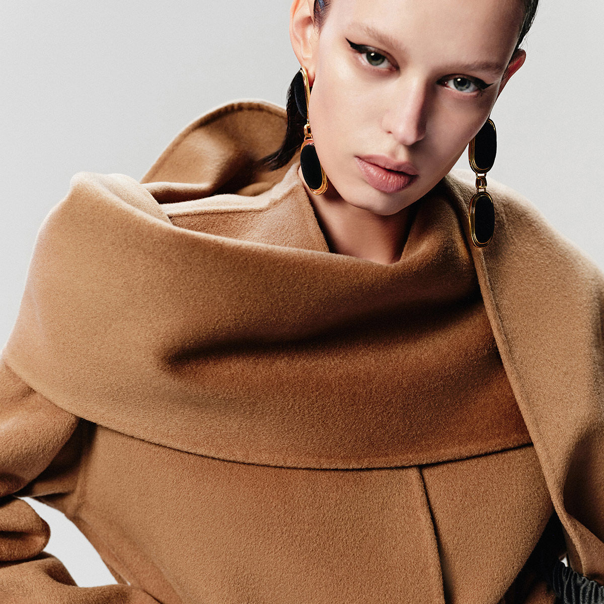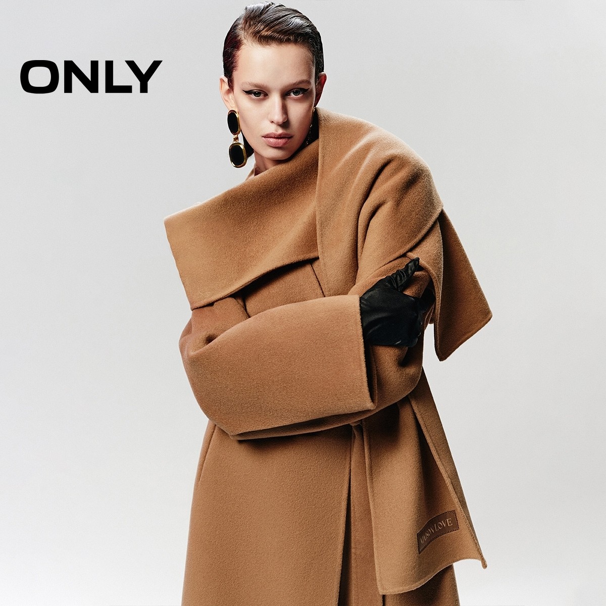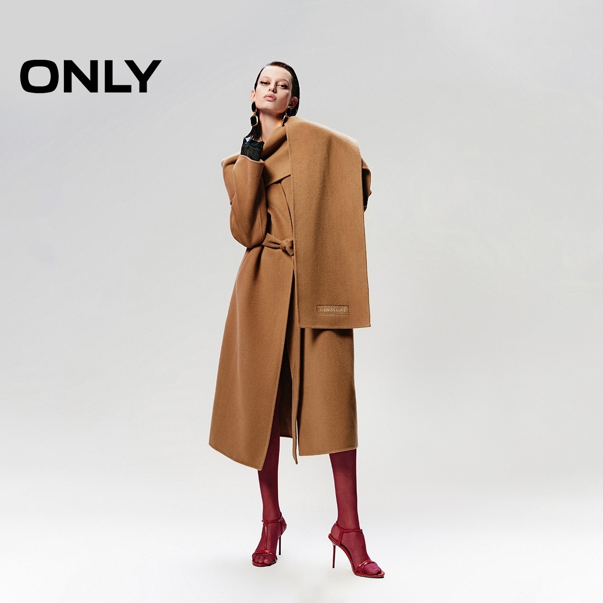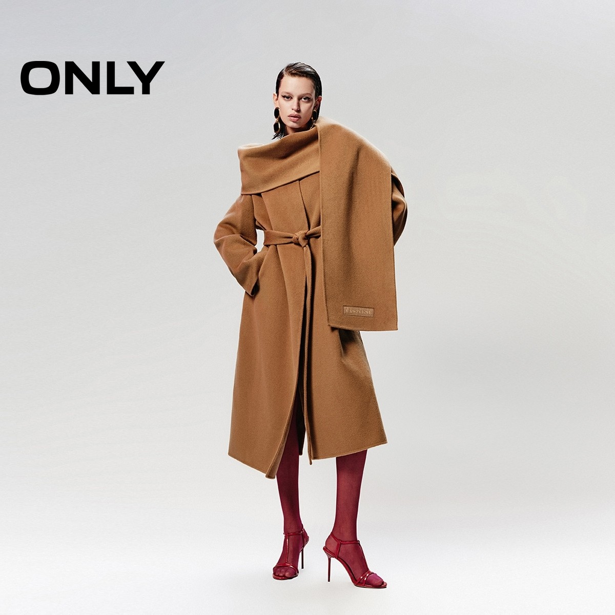 绫致ONLY秋冬纯绵羊毛质感长款围巾毛呢大衣女时尚百搭潮