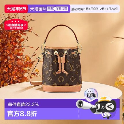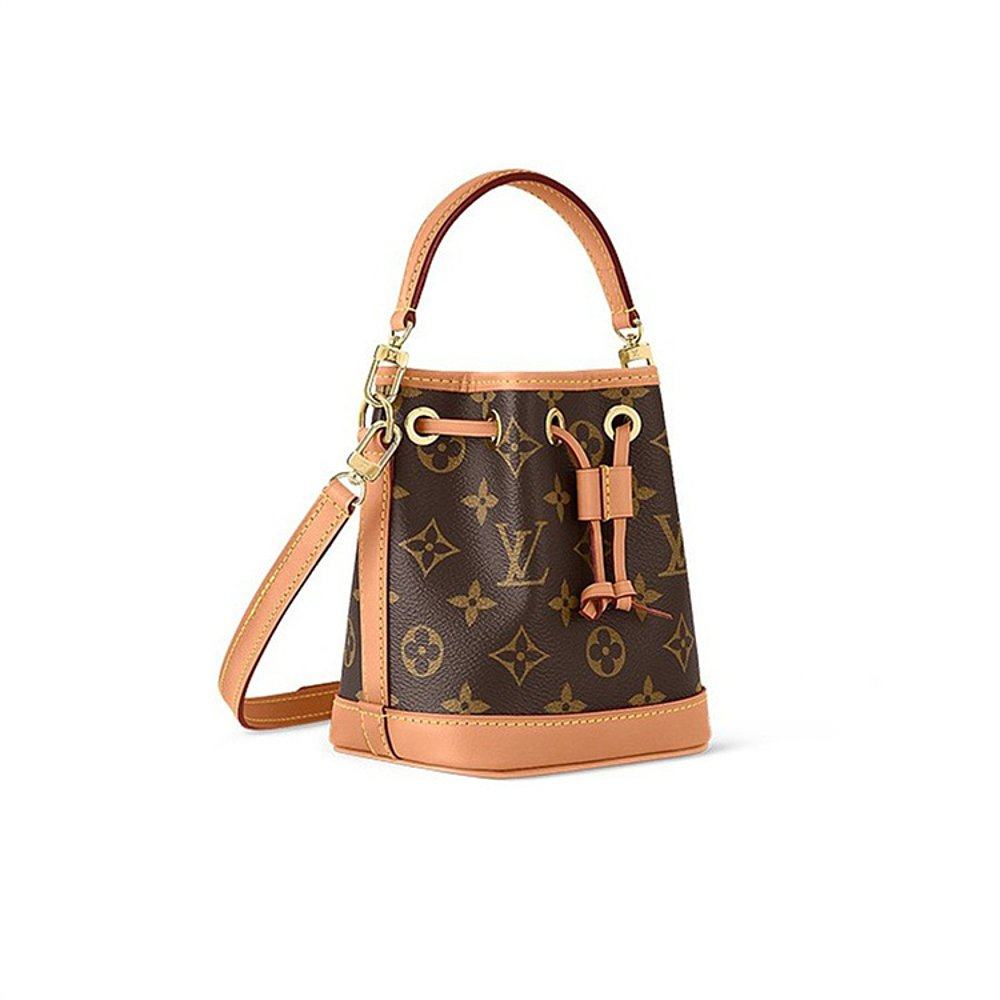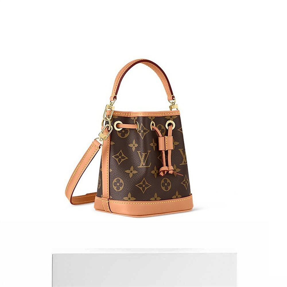 自营欧洲直邮LV/路易威登NANO老花牛皮抽绳手提单肩水桶包